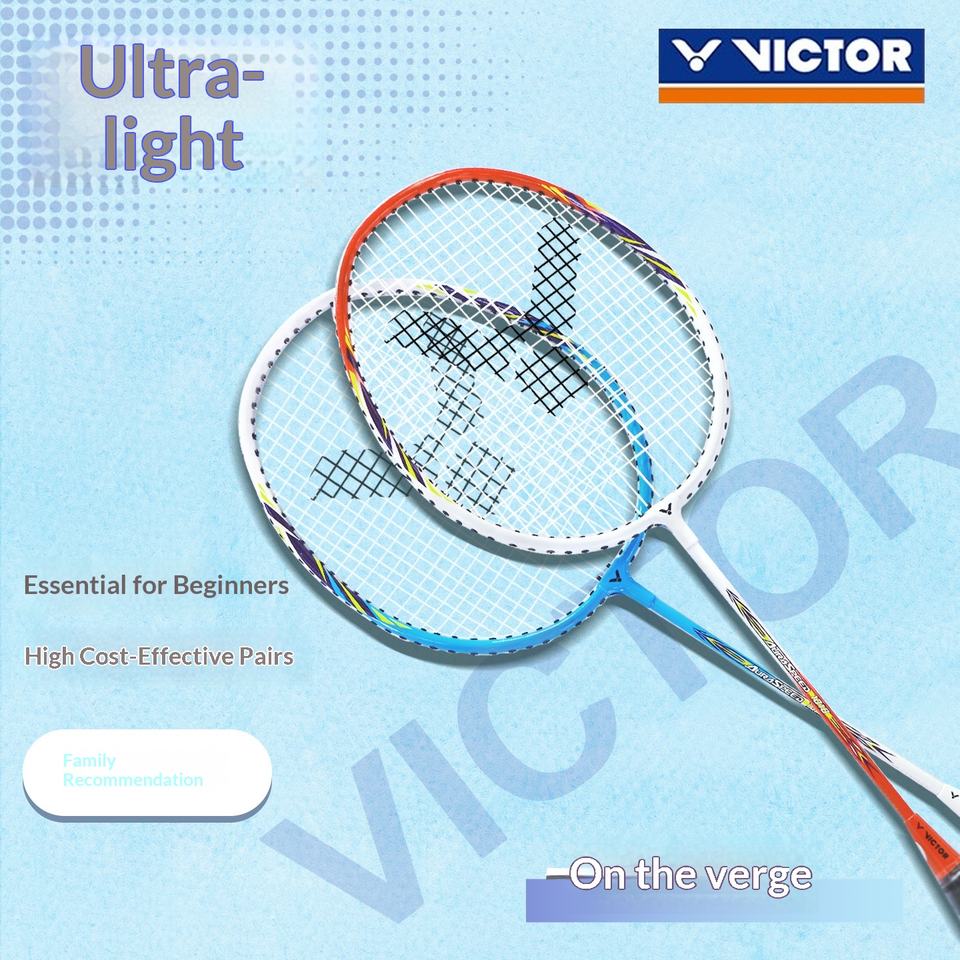 ชุดไม้แบดมินตันสำหรับเด็กนักเรียนระดับเริ่มต้น VICTOR คาร์บอนไฟเบอร์ ด้ามจับ G5 ความแข็งปานกลาง ทนทาน เหมาะสำหรับการฝึกซ้อม ประกอบด้วย 2 ชิ้น