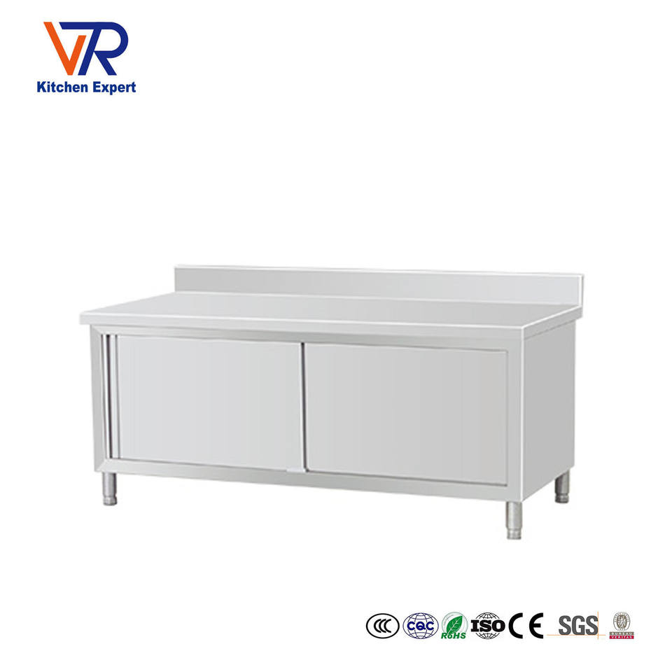 Victory 30% โต๊ะสแตนเลสประตูบานเลื่อนพร้อมตู้อุปกรณ์ครัวสำหรับโรงแรมและร้านอาหารอื่นๆ