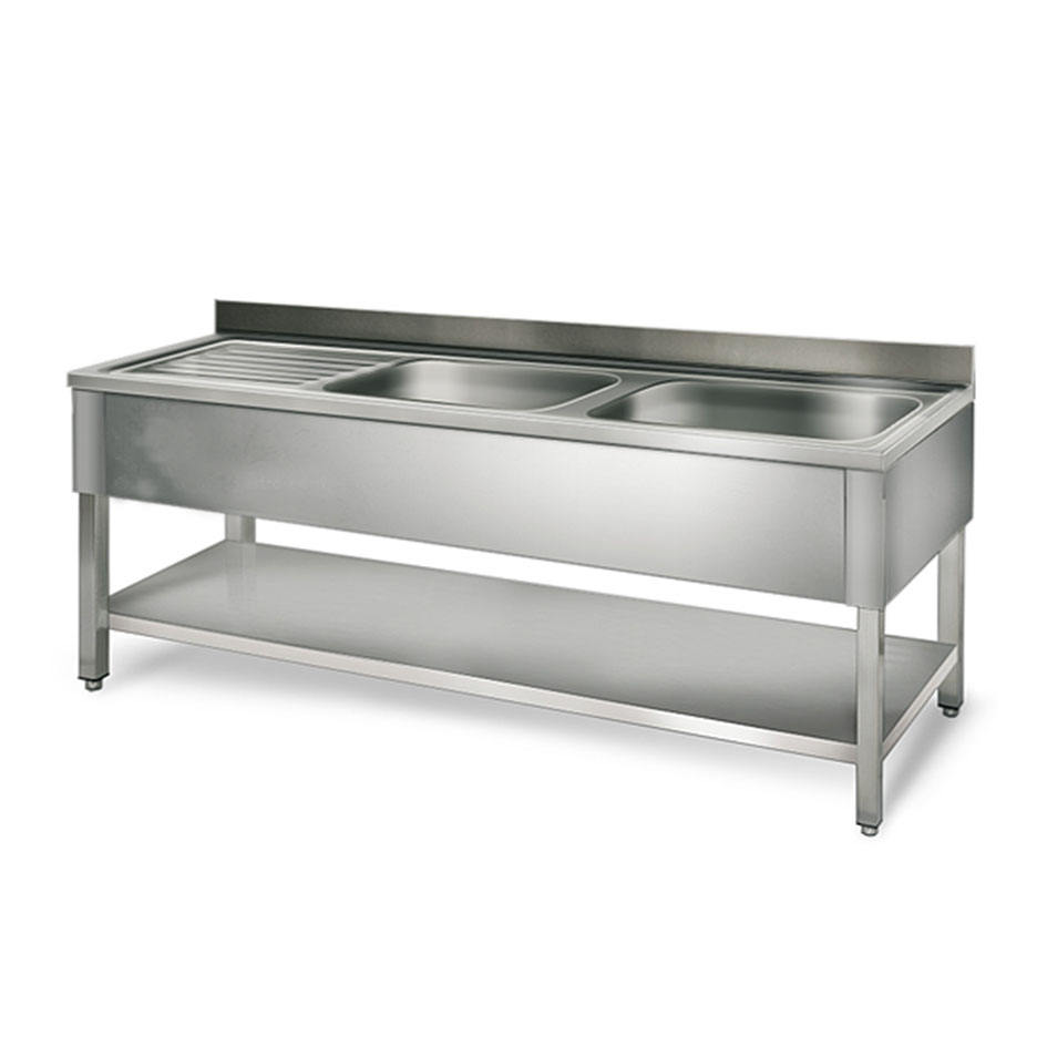 Victory อ่างล้างจานสแตนเลสคู่พร้อมตู้อุปกรณ์จัดเลี้ยงสำหรับโรงแรมอื่นๆ