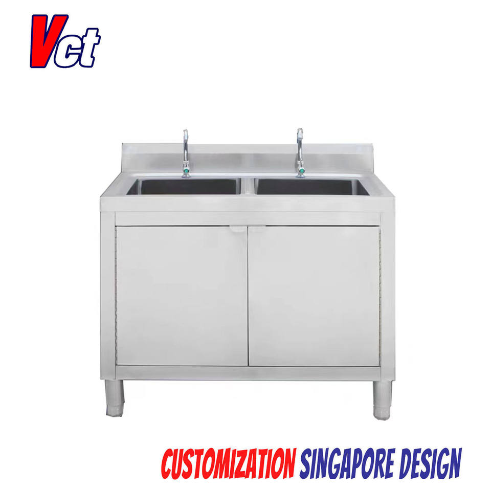 Victory อ่างล้างจานสแตนเลสสองชั้นพร้อมตู้ INOX อ่างล้างจานสำหรับอุปกรณ์โรงแรมและร้านอาหารอื่นๆ