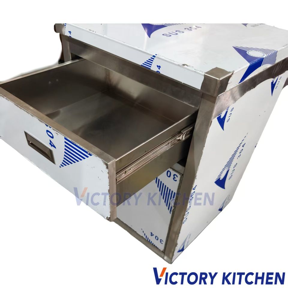 Victory โต๊ะสแตนเลสใช้ในเชิงพาณิชย์อุปกรณ์จัดเลี้ยงสำหรับโรงแรมและร้านอาหารอื่นๆพร้อมตู้เก็บของ