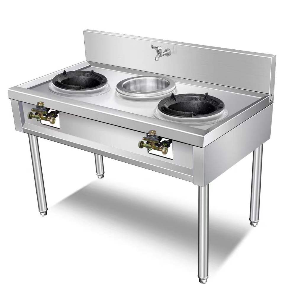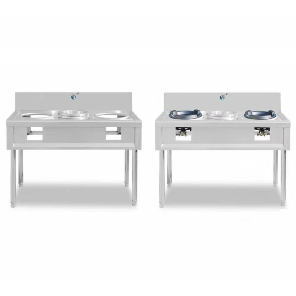เตาสแตนเลสคุณภาพสูง VICTORY รุ่นพิเศษสำหรับร้านอาหารในมาเลเซีย ผลิตจากสแตนเลส 304 พร้อมเตาแก๊สสองหัวสำหรับครัว