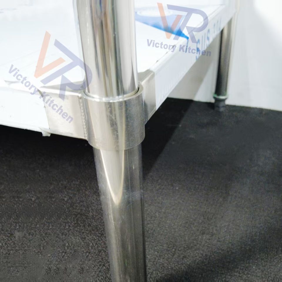โต๊ะสแตนเลสสำหรับทำงานในครัว Victory คุณภาพสูงทำจากสแตนเลสมีแผ่นกันกระเด็นสำหรับ Mayalsia ห้องครัวเชิงพาณิชย์ของโรงแรมร้านอาหาร