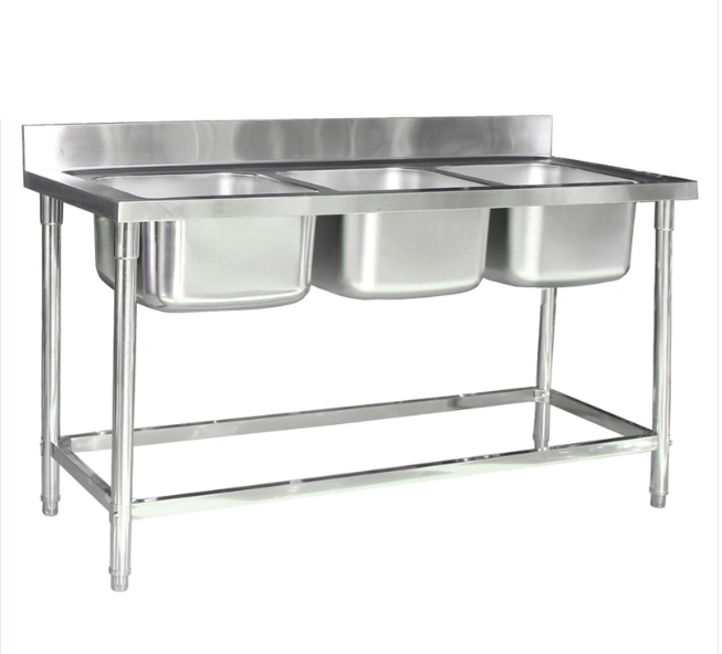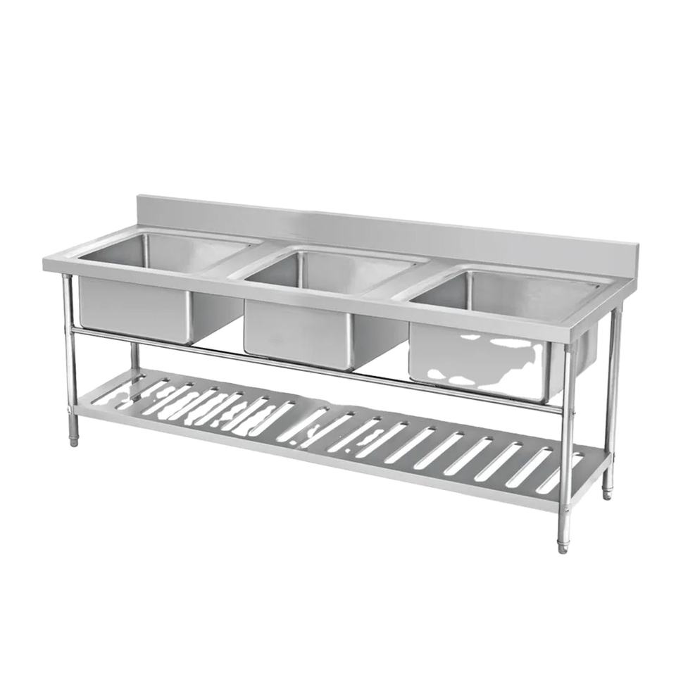 อ่างล้างจานสามช่องสแตนเลสสตีลสามช่องสำหรับการค้าอุปกรณ์ในห้องครัว