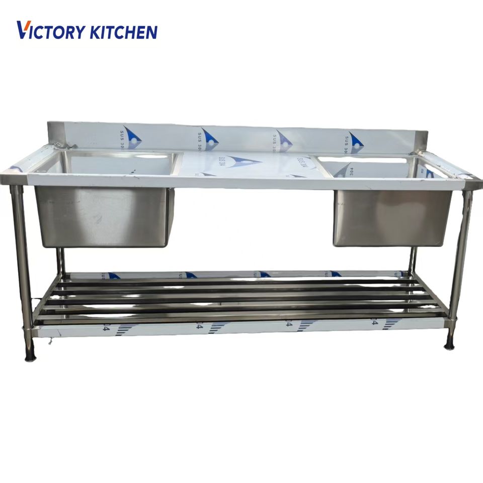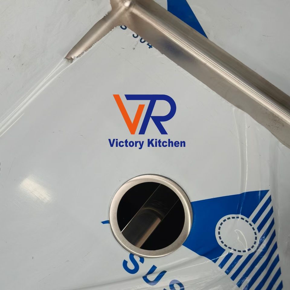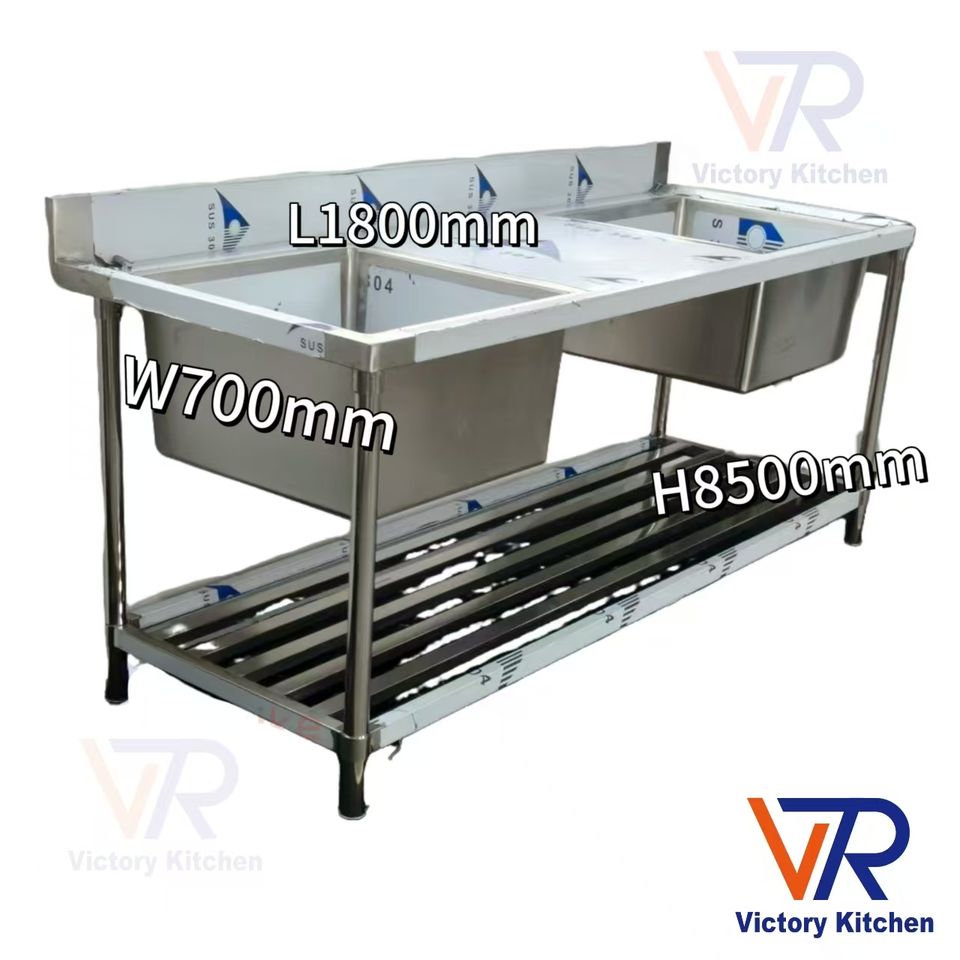อ่างล้างจานสแตนเลสขัดเงาแบบสองหลุม พร้อมที่คว่ำจาน ดีไซน์อุตสาหกรรม VICTORY KITCHEN พร้อมก๊อกน้ำแบบก้านโยก ทำความสะอาดง่าย