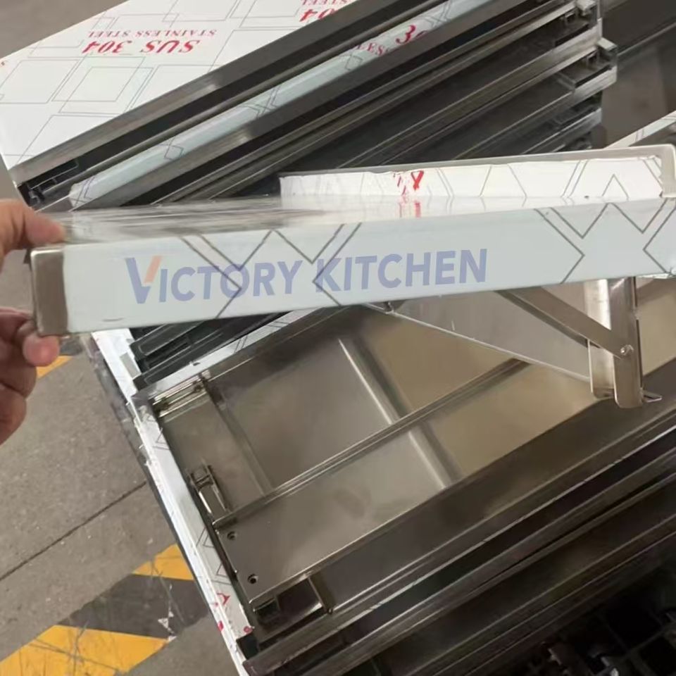 Victory ชั้นวางของสแตนเลสติดผนังพับได้สำหรับห้องแล็บและร้านอาหารอุปกรณ์สำหรับจัดเลี้ยงในห้องครัว