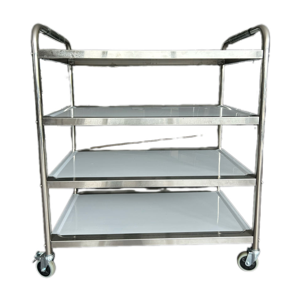 รถเข็นสแตนเลสสำหรับใช้ในห้องครัวมีล้อ INOX handcart สำหรับรับประทานอาหารสำหรับโรงแรมและร้านอาหาร