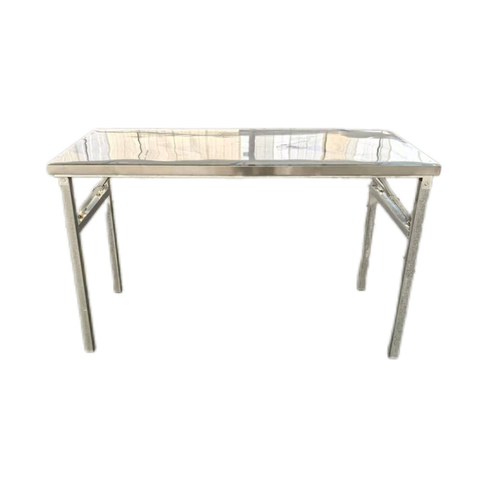 โต๊ะพับสแตนเลส Victory พร้อมม้านั่งตัดสี่เหลี่ยมสำหรับอุปกรณ์จัดเลี้ยงสำหรับโรงแรมร้านอาหารห้องครัว