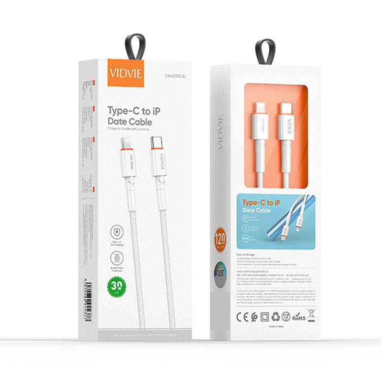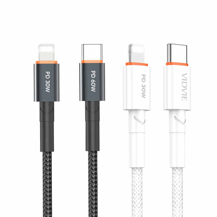 Vivie PD 30W USB C Type C สายชาร์จไวไนลอนถักประเภท C เป็นสายข้อมูลให้แสงสว่างสำหรับ iPhone 14 13 12 iPad