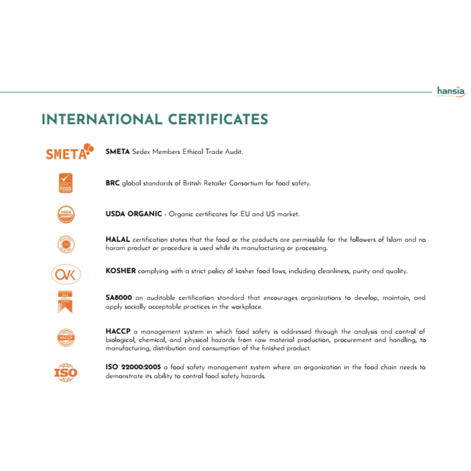 BRC เกรด A, อินทรีย์, smeta, ISO, Fairtrade