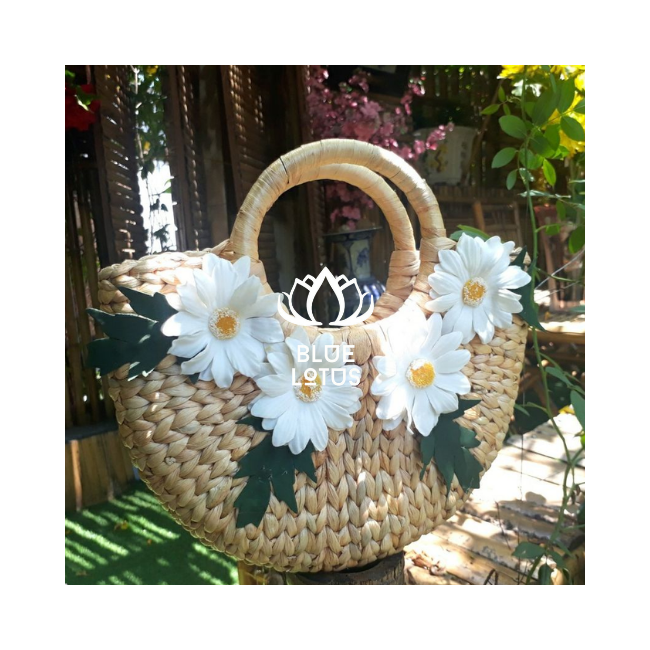 กระเป๋าผักตบชวาทำด้วยมือจากเวียดนามกระเป๋าฟางเป็นมิตรกับสิ่งแวดล้อมทนทานมีลวดลายตามธรรมชาติ