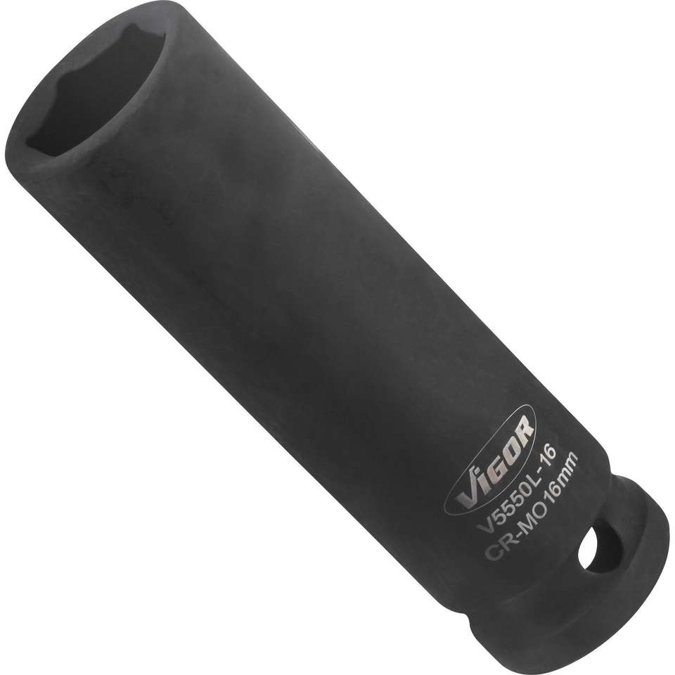 ซ็อกเก็ตประแจแรงกระแทกของ Vigor ช่องเสียบแบบ V5550L-16, ช่องสี่เหลี่ยม1/2นิ้ว (12.5มม.), กลวง-โปรไฟล์หกเหลี่ยมภายนอกขนาด16มม