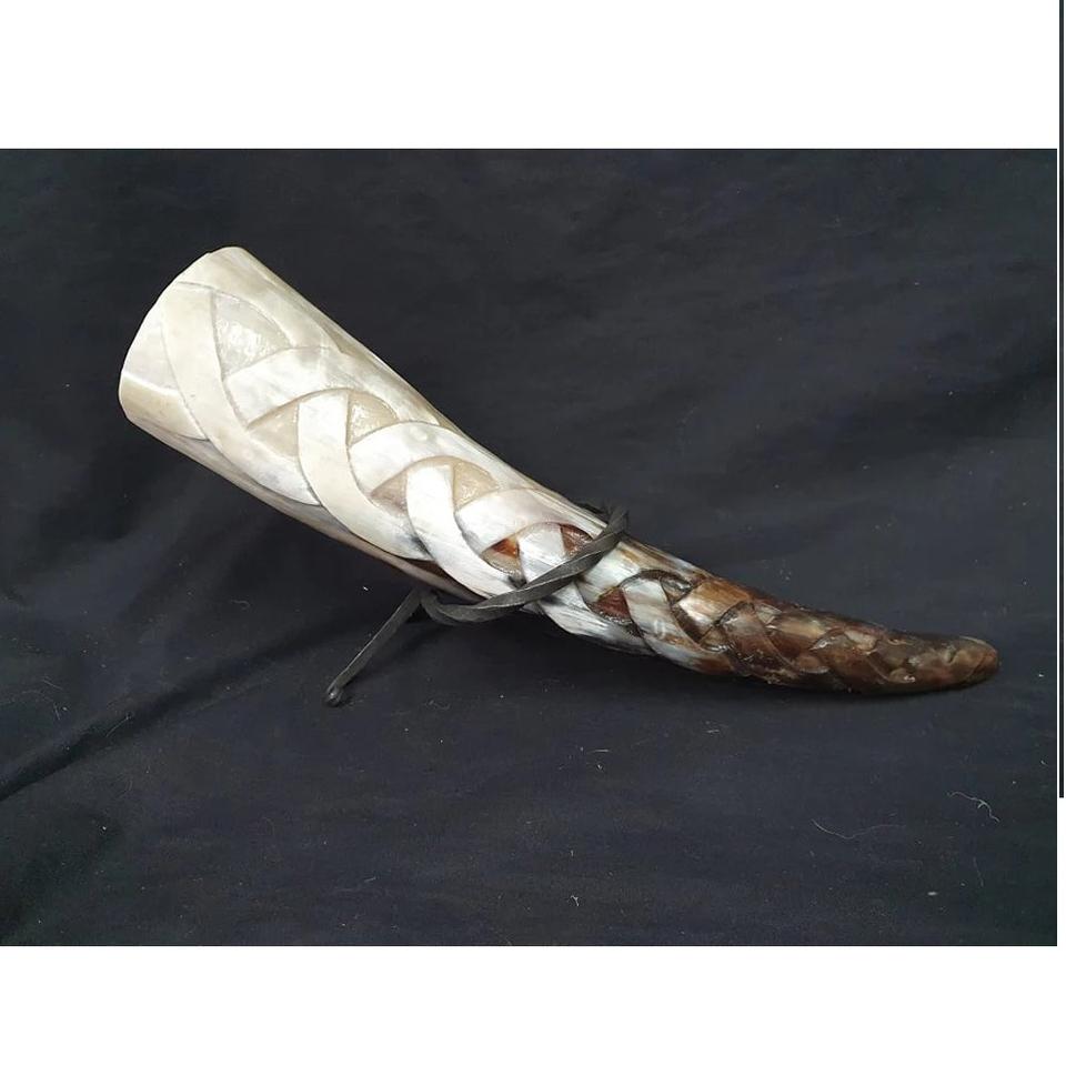 ฮอร์นดื่มไวกิ้งพร้อมขาตั้งเหล็กปลอดภัยอาหารปราศจากเชื้อทำด้วยมือจากธรรมชาติ