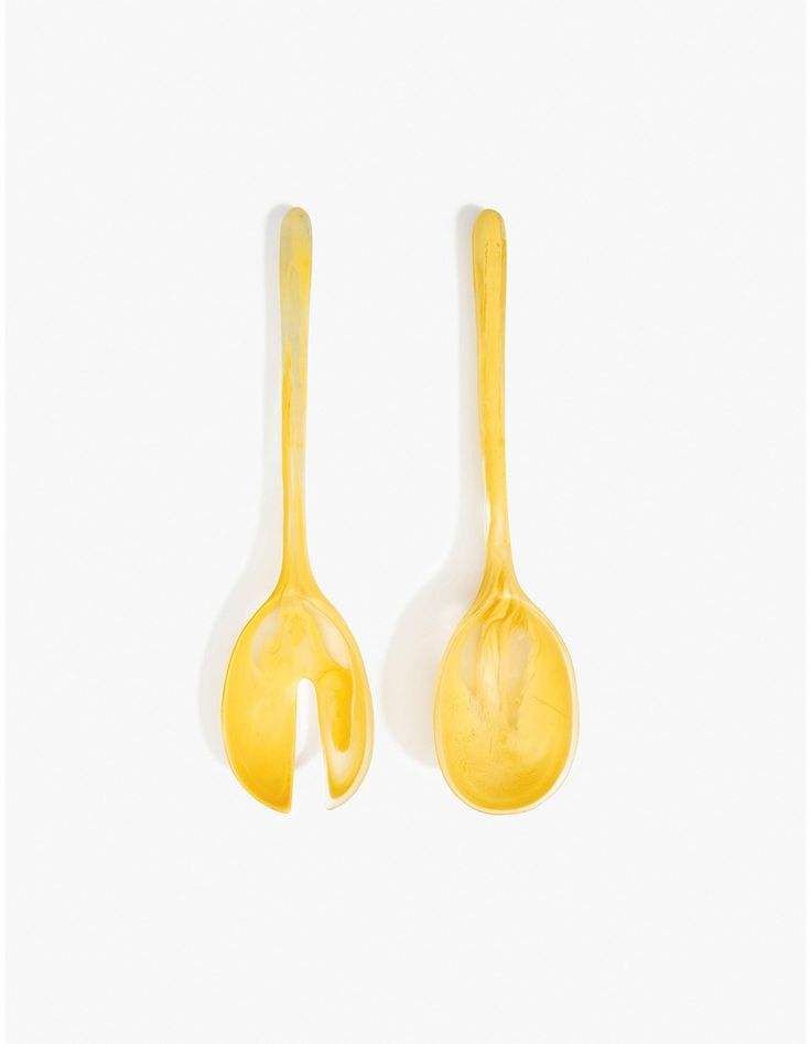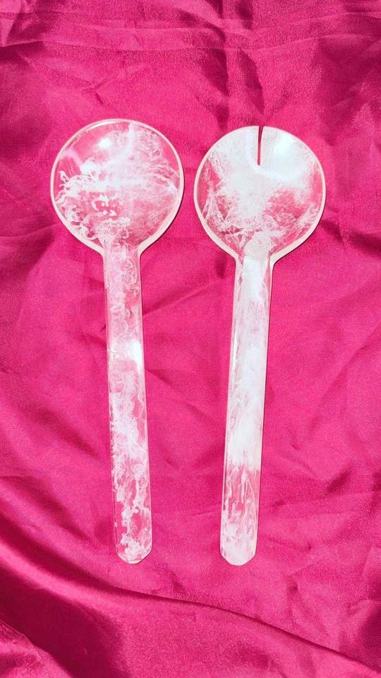 ช้อนสลัดเรซิ่นทำมือสไตล์วินเทจ ชุดช้อนเสิร์ฟตกแต่ง ช้อนผสมอาหาร ช้อนส้อมด้ามจับสำหรับสลัด
