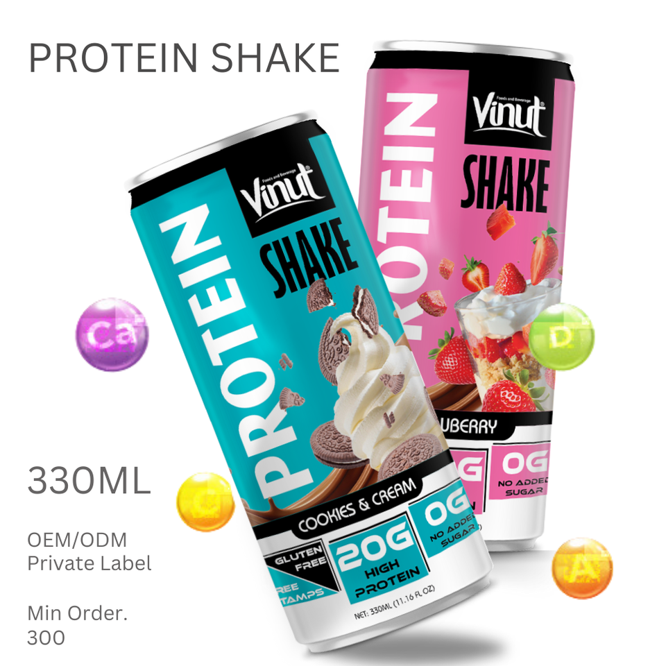 โปรตีนเชค VINUT 20 กรัม รสวานิลลา 330 มล. - ตัวอย่างฟรี - ออกแบบตามสั่ง - บริการรับผลิตแบบ OEM ODM