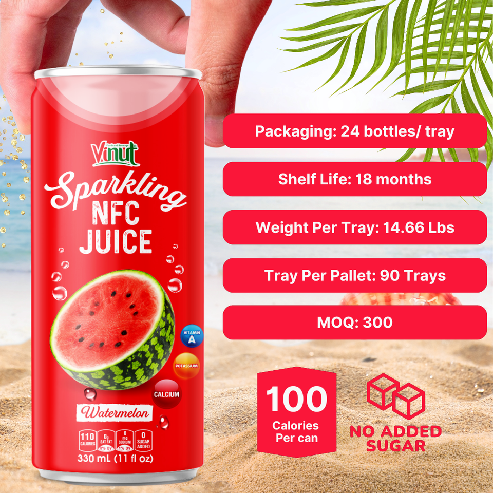 น้ำผลไม้แตงโมอัดลม VINUT 330 มล. ตัวอย่างฟรี ราคาขายส่ง รับผลิตแบบ OEM ODM แบรนด์ส่วนตัว ผู้ผลิตได้รับมาตรฐาน ISO
