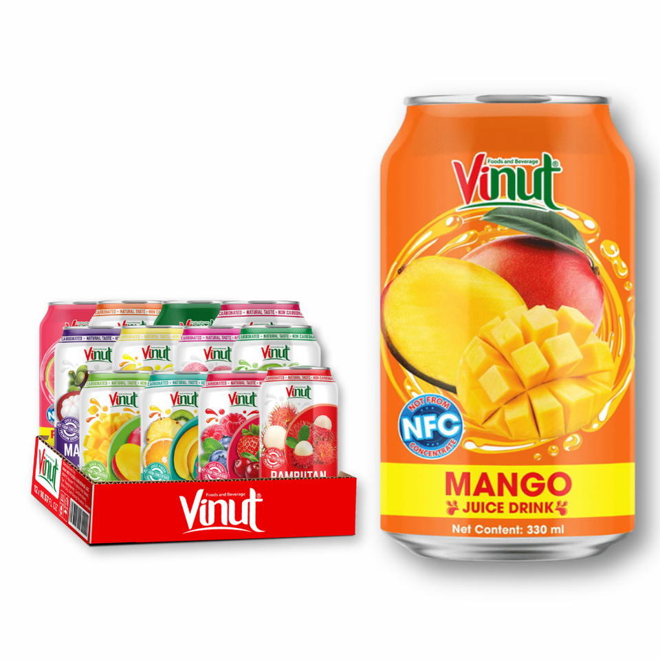 เครื่องดื่มน้ำผลไม้มะม่วง330มล. 24กระป๋องปราศจากน้ำตาลไม่มีการเพิ่ม OEM ฉลากส่วนตัวตัวอย่างโรงงาน