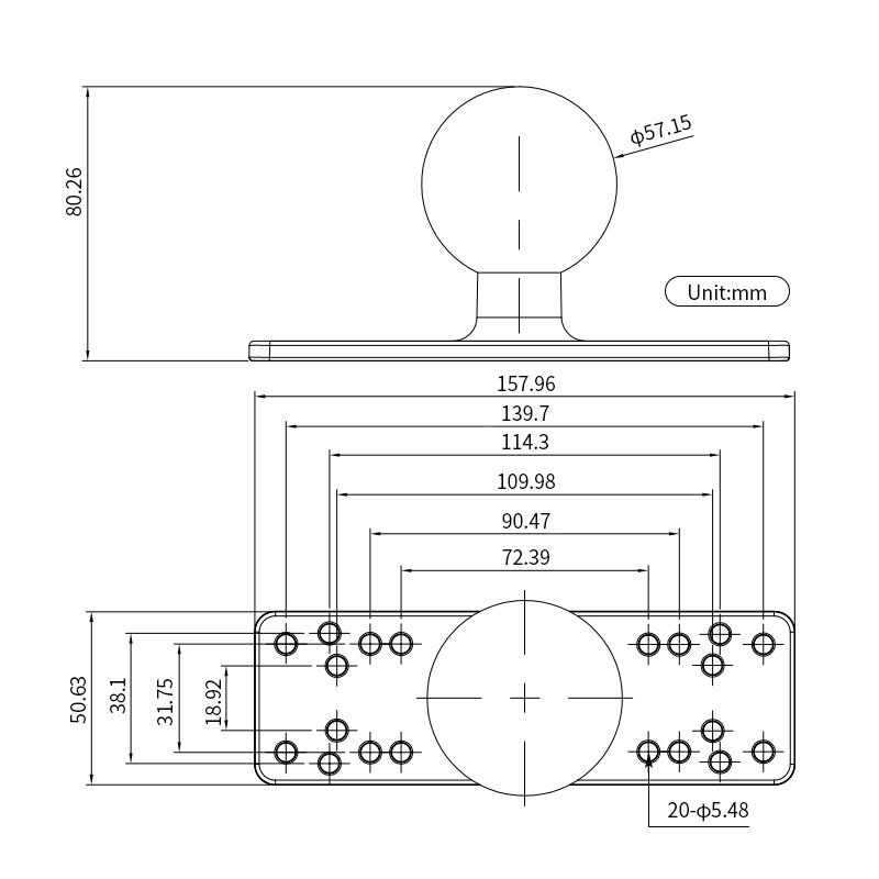 ชื่อสินค้า:ฐานหัวบอลสำหรับเครื่องหาปลา ขนาด 2.25 นิ้ว