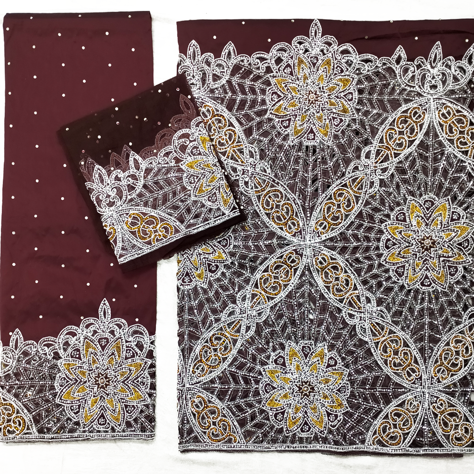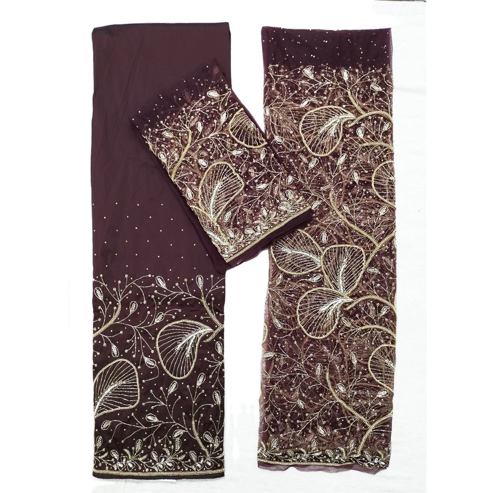 ชุดเดรสเจ้าสาวสไตล์ ASOEBI ผ้าไหมเนื้อนุ่มแบบ VIP ประดับด้วยลูกปัดสีทองอย่างดี ผ้าจอร์จแบบแอฟริกัน ผ้าคลุมศีรษะแบบแอฟริกัน