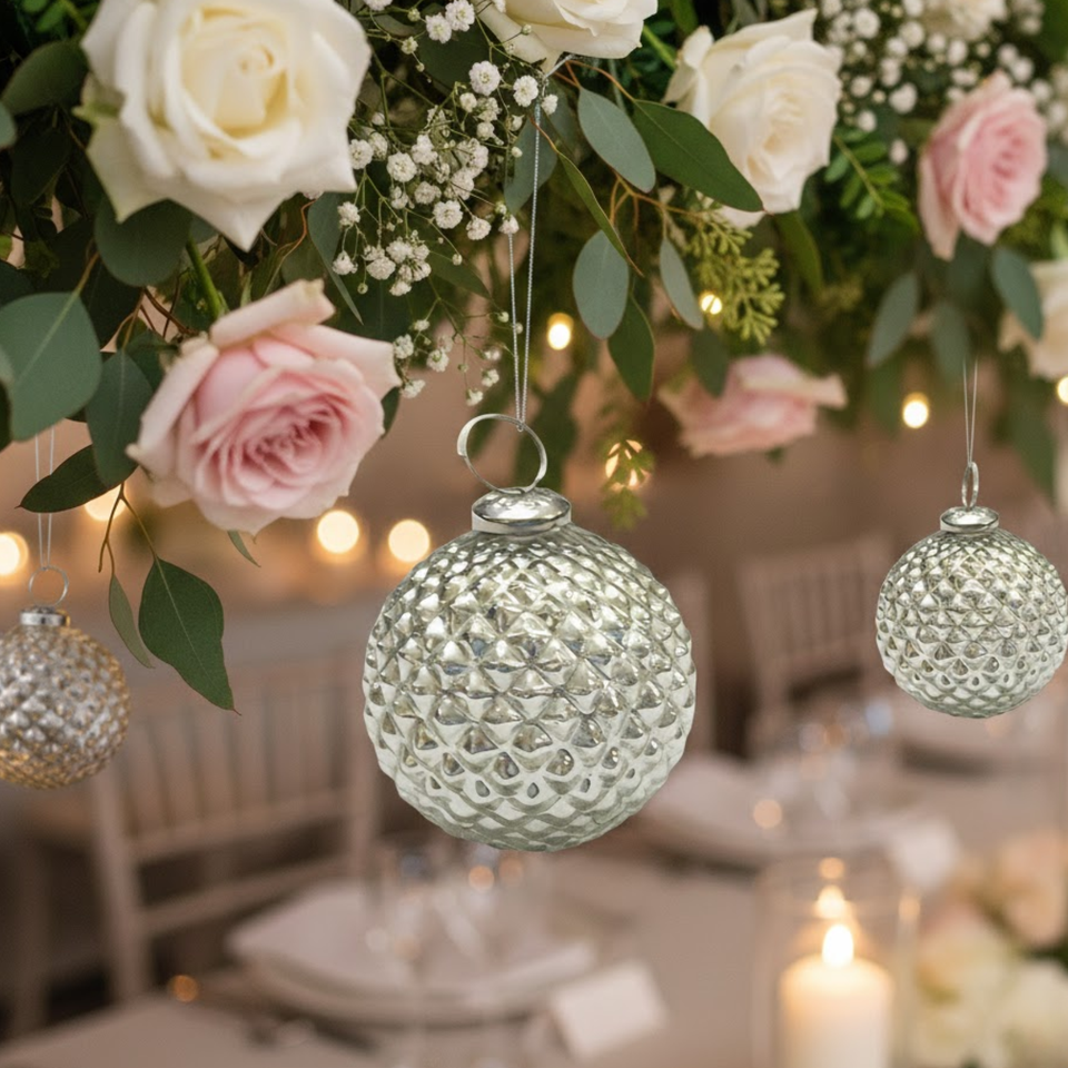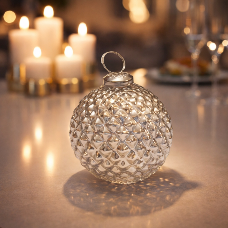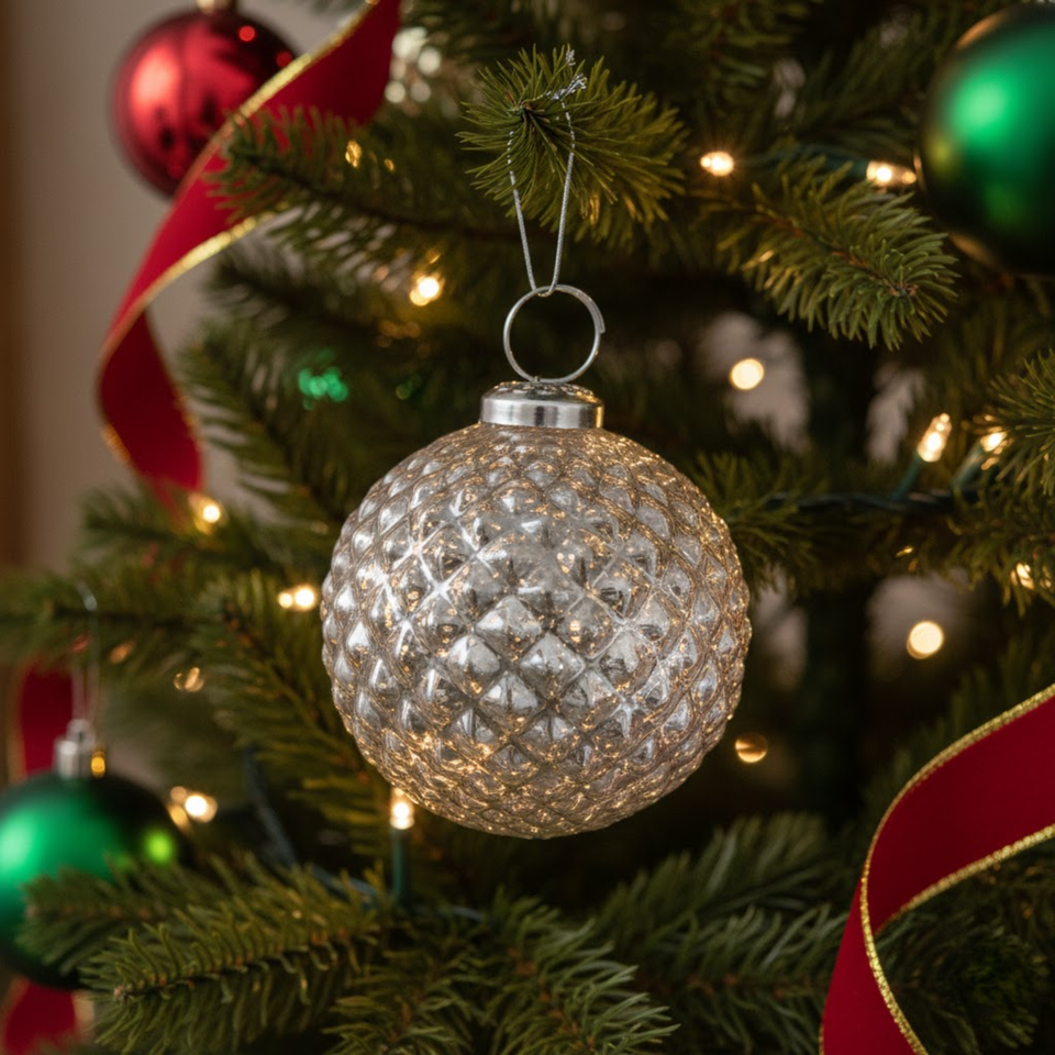 เครื่องประดับตกแต่งต้นคริสต์มาสทรงกลมแก้วเมอร์คิวรี่ลายนูน รุ่น VIXM14007 ขายดีอันดับต้นๆ | ชุดตกแต่งวันหยุดสุดหรูหราสำหรับตกแต่งบ้านและงานปาร์ตี้
