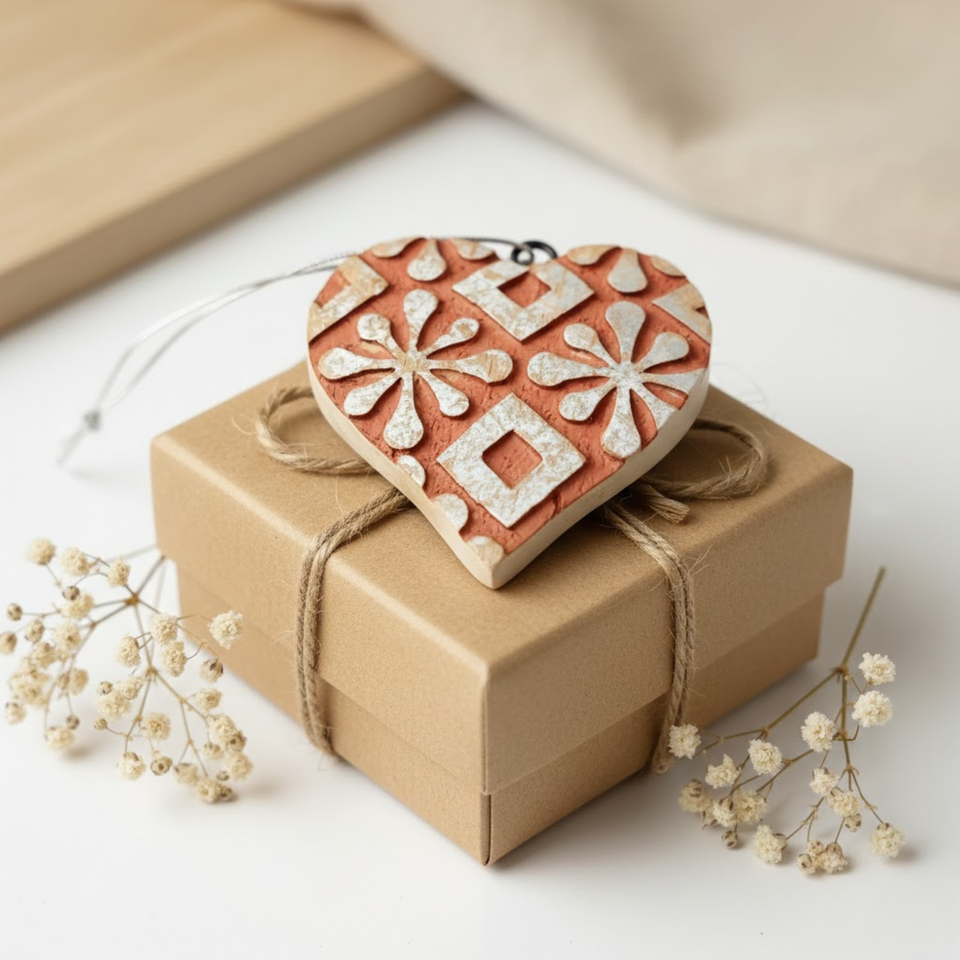 เครื่องประดับตกแต่งต้นคริสต์มาสรูปหัวใจทำจากไม้คุณภาพสูง พิมพ์ลายแบบนามธรรม รุ่น VIXM17008 | ของขวัญตกแต่งบ้านในช่วงเทศกาล