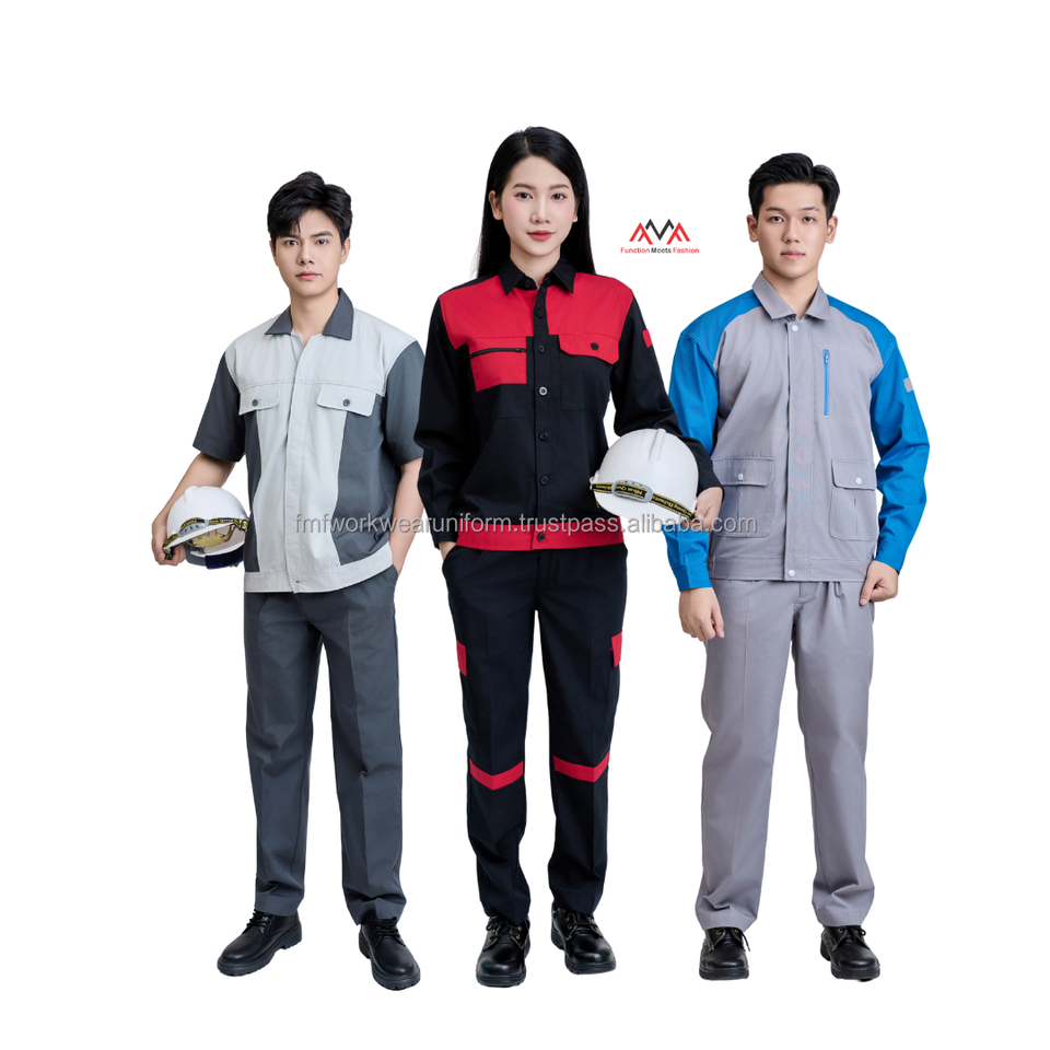 ชุดช่างเชื่อม VN FACTORY เหมาะสำหรับคนงานภาคสนาม ชุดทำงานในฟาร์ม ชุดยูนิฟอร์มซูซูกิ เสื้อคนงานก่อสร้าง ชุดยูนิฟอร์มช่างไฟฟ้า MOQ ต่ำ มีตัวอย่างให้ฟรี