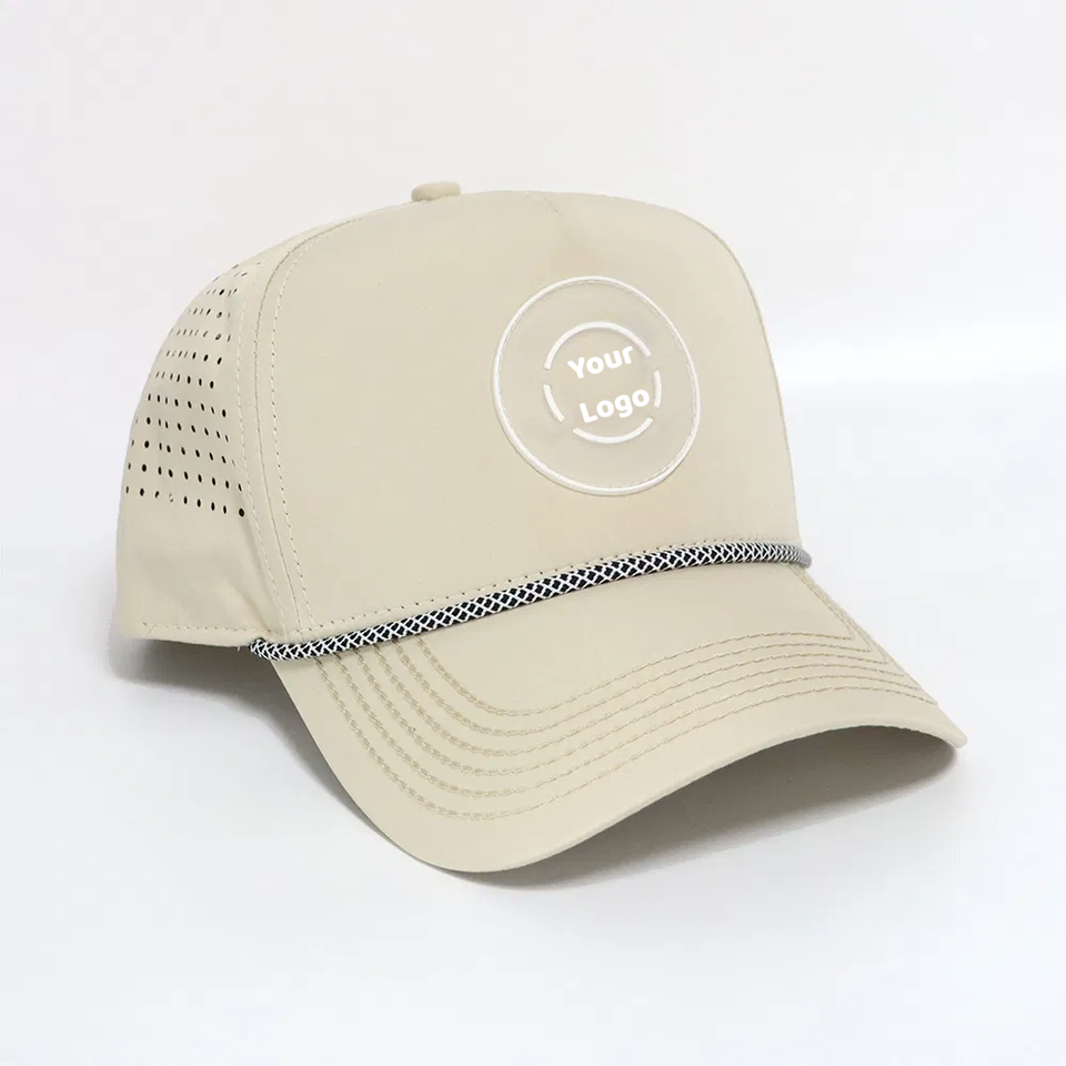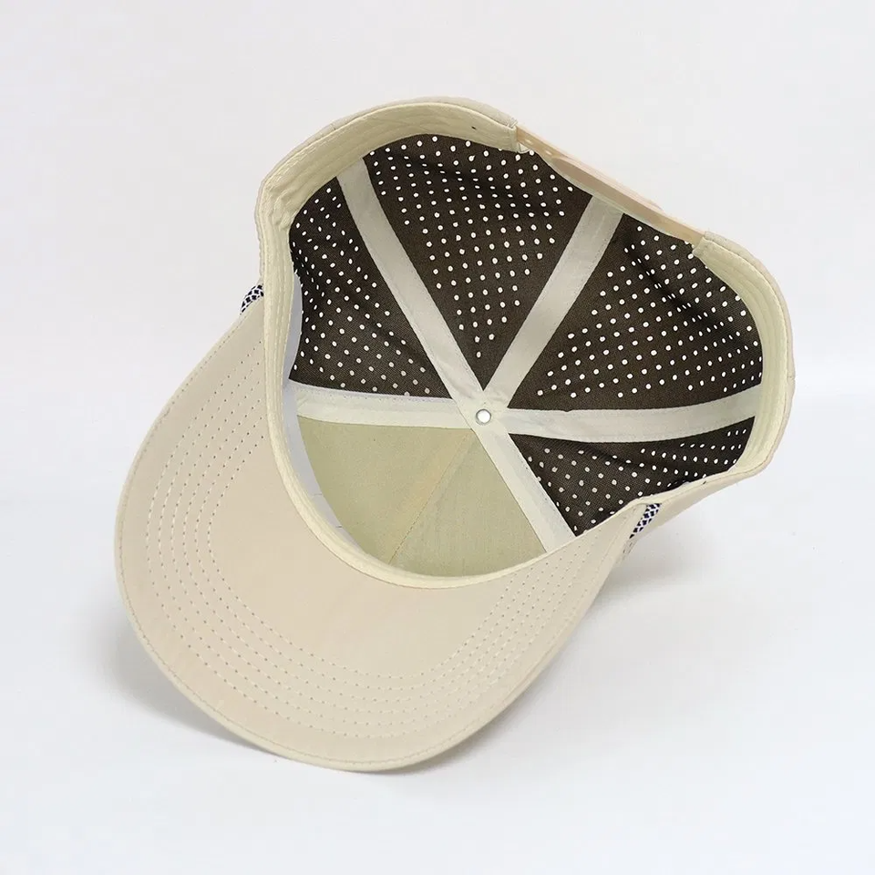 หมวกเบสบอลพลาสติก5แผงหมวกปีกโค้งโลโก้แผ่นยางพีวีซีมีรูตัดด้วยเลเซอร์กันน้ำมีรู