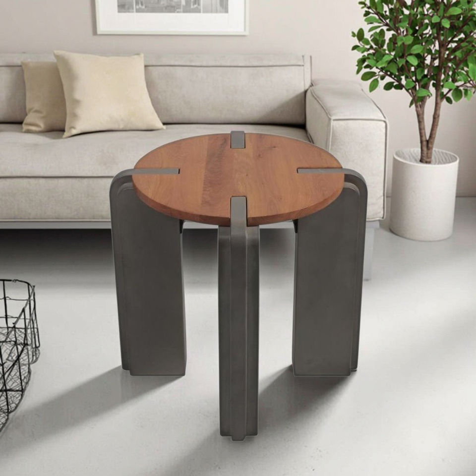 โต๊ะกาแฟทรงกลมฐานคอนกรีตโต๊ะข้างแบบผสมทำจากไม้โอ๊ค