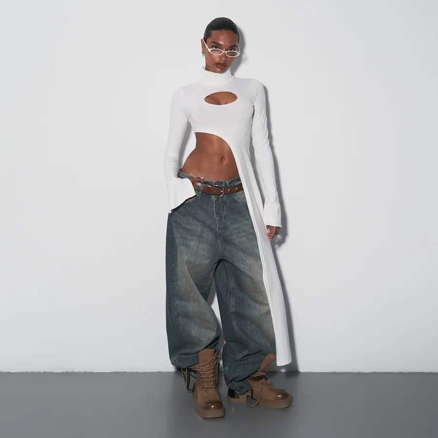 เสื้อถักไหมพรมแขนยาวทรงไม่สมมาตรสำหรับผู้หญิง VOIKERDR เสื้อครอเชต์เนื้อนุ่มความหนาปานกลาง