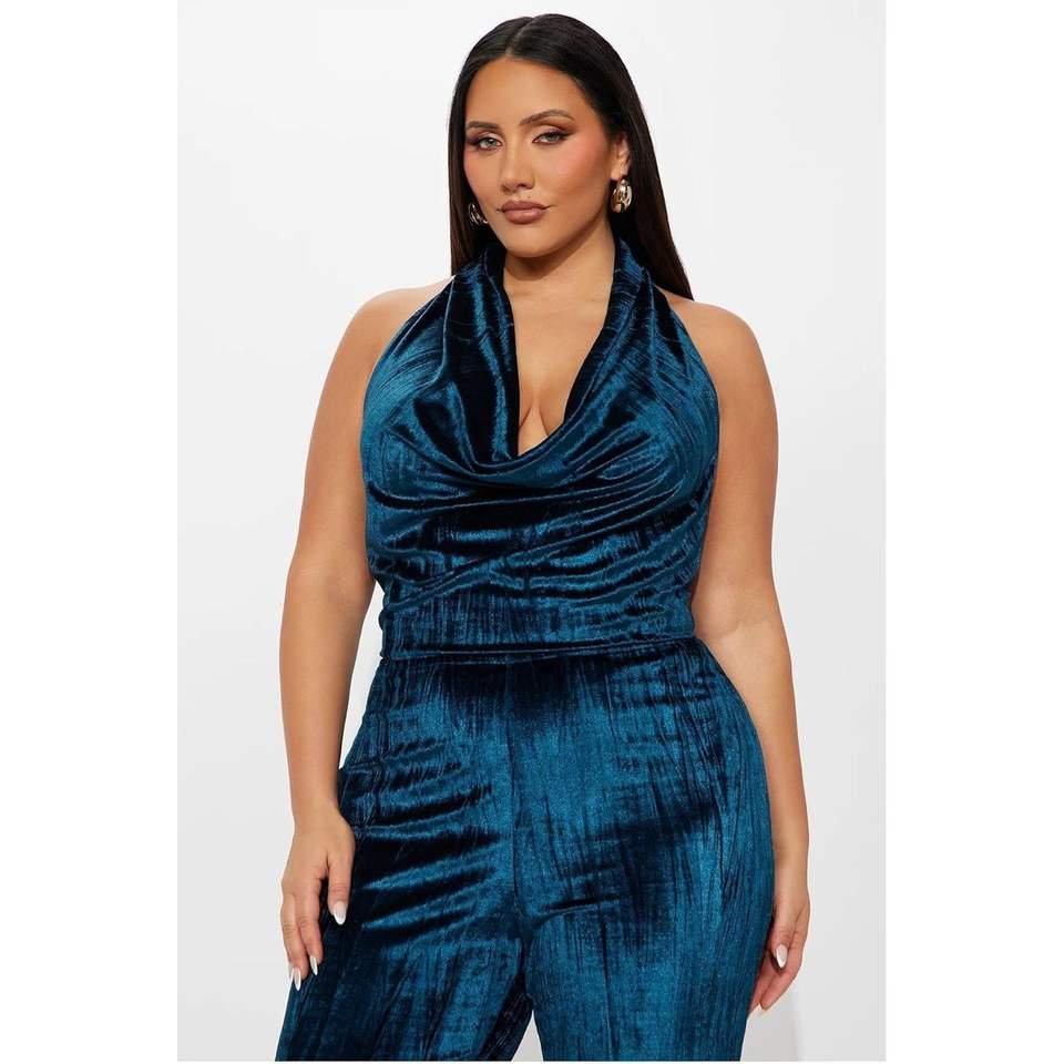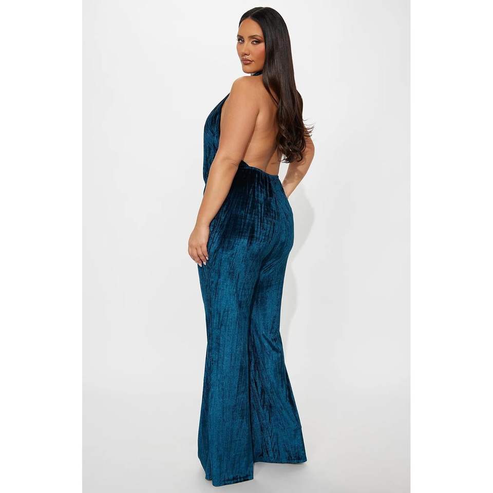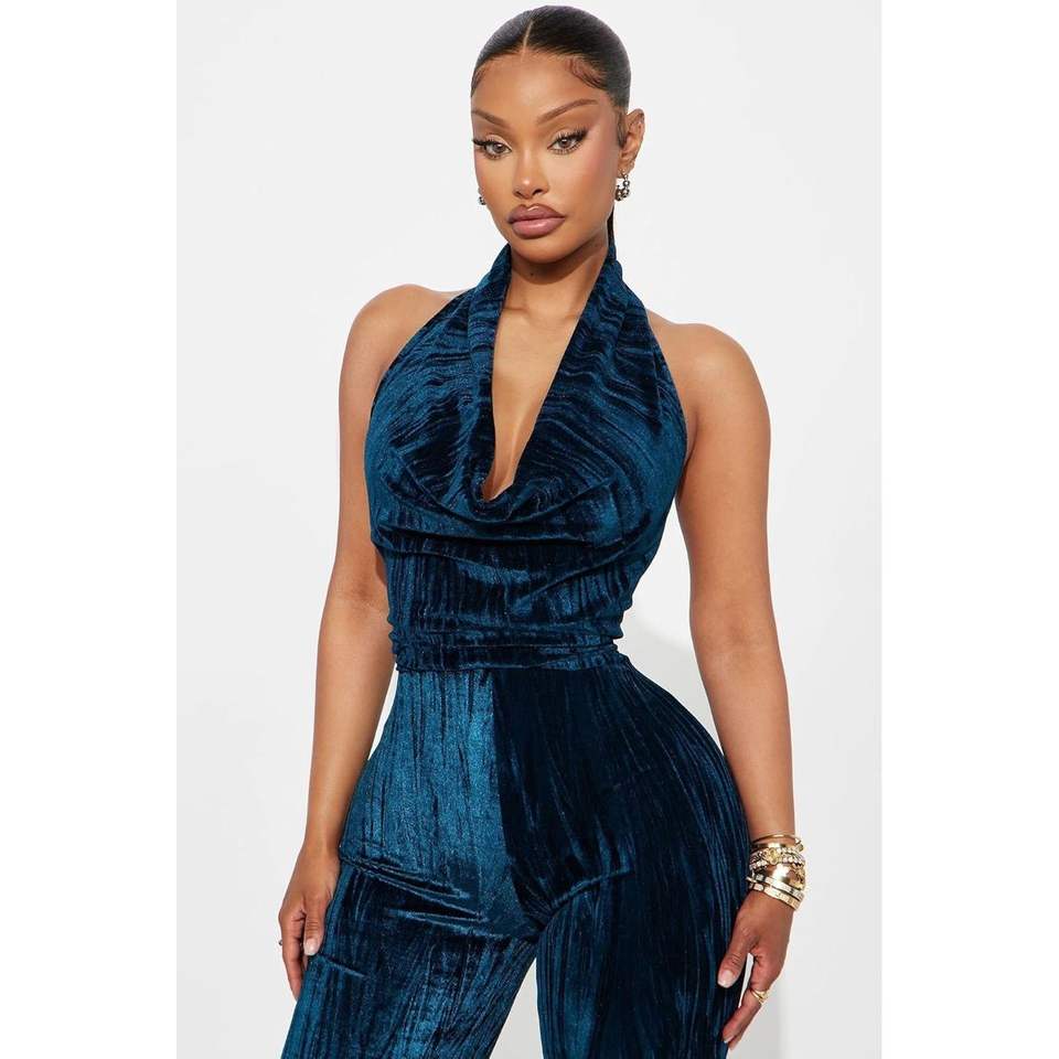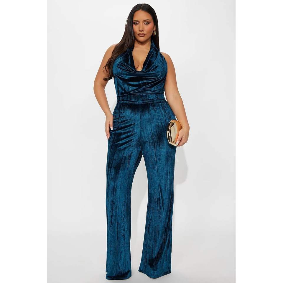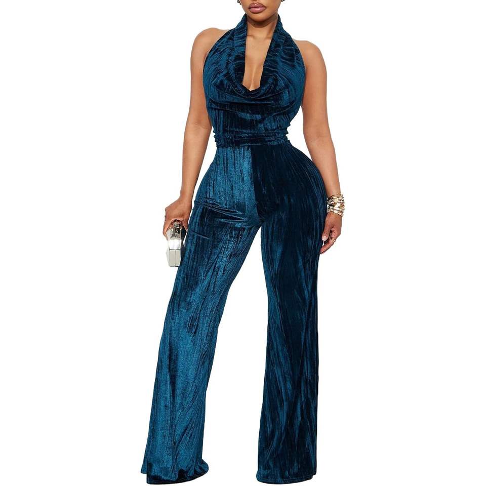 VOIKERDR Women's Velvet Jumpsuit Halter Backless Draped Dressy Party Outfit Cocktail Clubwear Plus Size