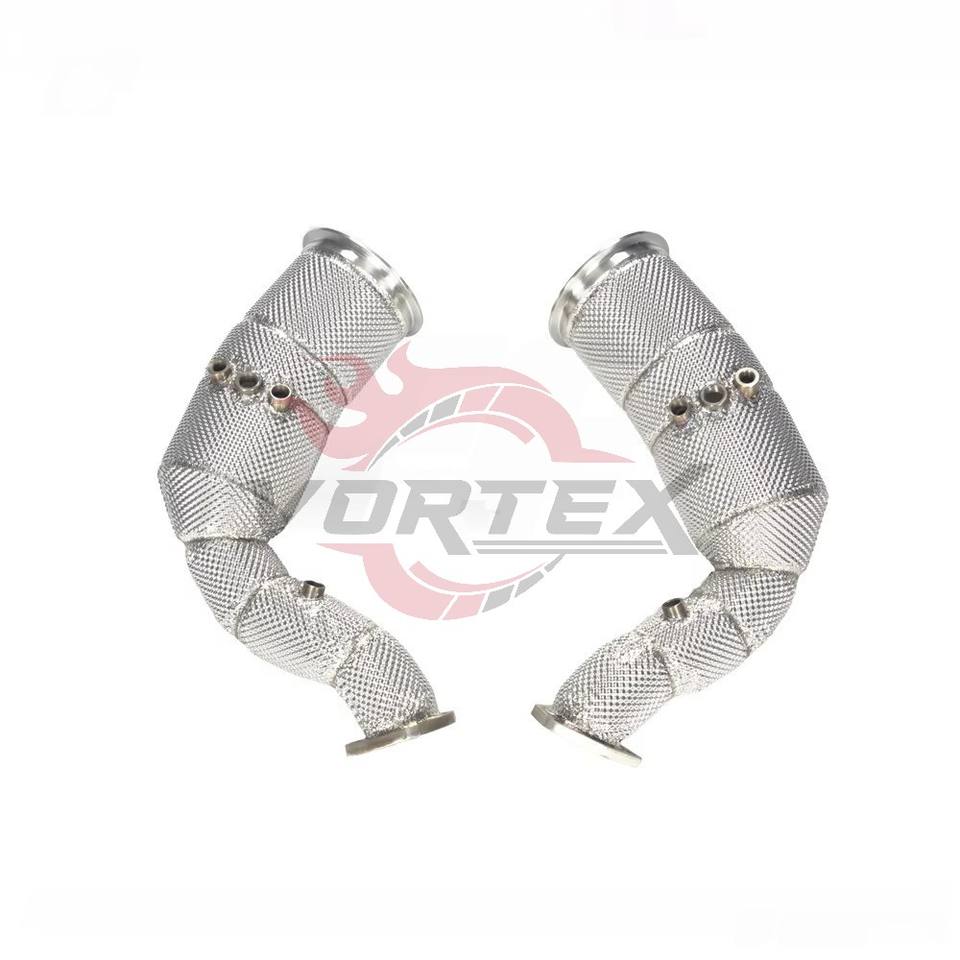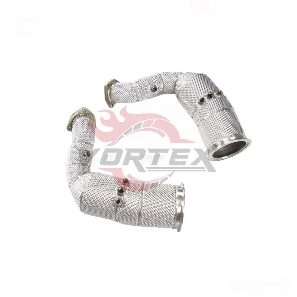 ระบบท่อไอเสียดาวน์ไปป์ VORTEX High Performance ความหนา 1.5 มม. ขัดเงาแบบกระจก ผลิตจากสแตนเลสสตีล SS304 สำหรับ Porsche Urus