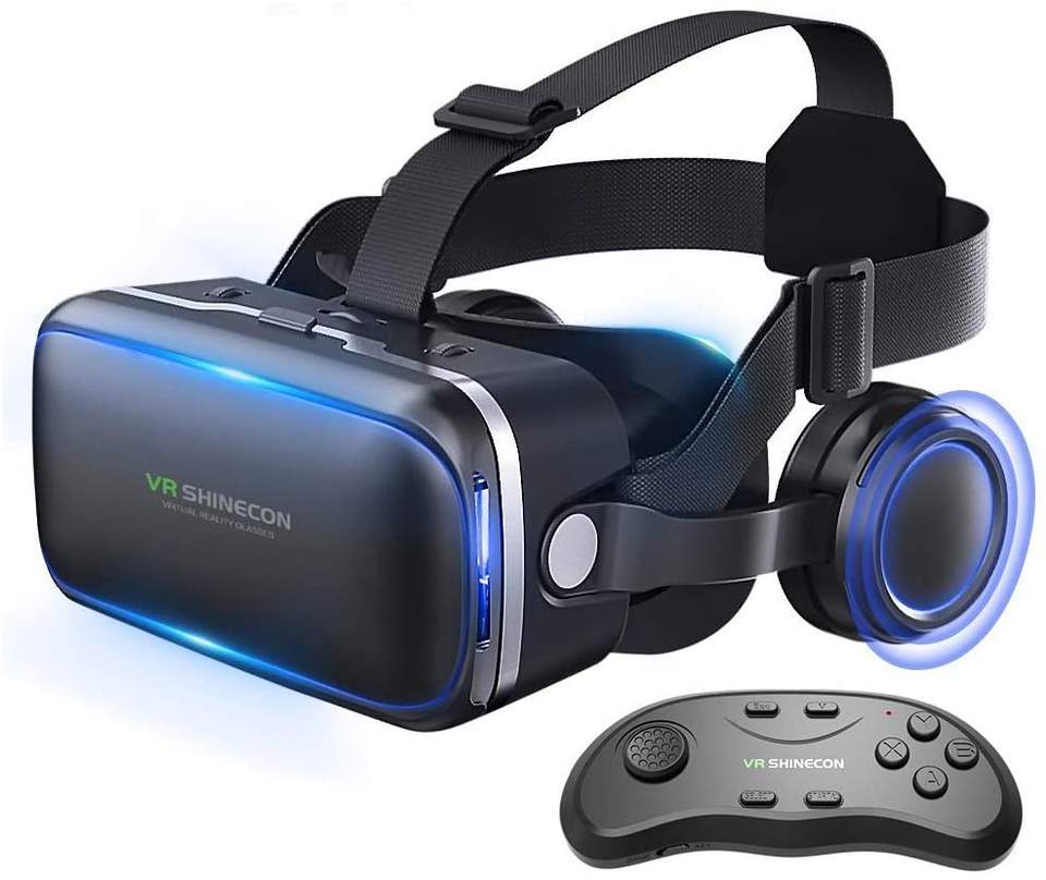 ชุดหูฟัง VR พร้อมรีโมทคอนโทรล แว่นตา 3 มิติ ชุดหูฟังเสมือนจริงสำหรับเล่นเกมและภาพยนตร์ 3 มิติ ระบบดูแลดวงตา VR
