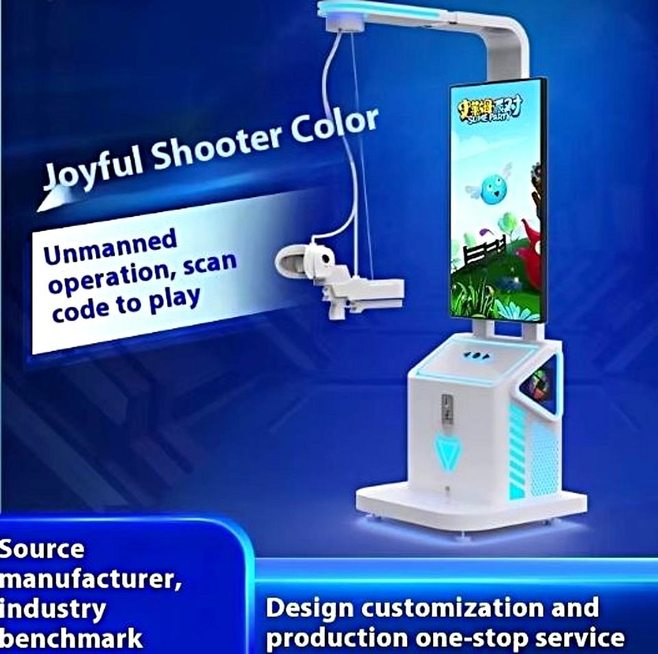 เครื่องจำลองการยิงปืน VR แบบหยอดเหรียญ ไม่มีคนดูแล ใช้ในร่ม พร้อมระบบสแกนคิวอาร์โค้ดโลหะ สำหรับประสบการณ์การยิงปืนด้วยตนเอง อุปกรณ์ MR