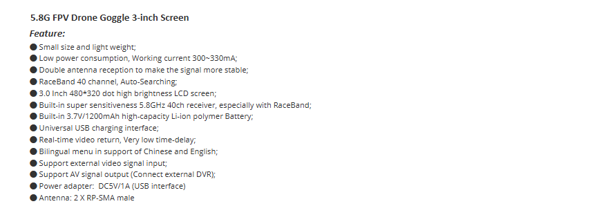 แว่นตา FPV VR009 5.8G 40CH ค้นหาสัญญาณอัตโนมัติ เสาอากาศคู่ หน้าจอ 3 นิ้ว พร้อมกล้องมองภาพบุคคลที่หนึ่งในตัว สำหรับโดรนแข่ง RC