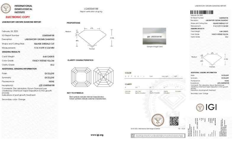 เพชรแบบหลวมสำหรับวงแหวนแอสเชอร์ตัดแอสเชอร์กะรัต4.5สีเหลืองเข้มสไตล์แฟนซี VS