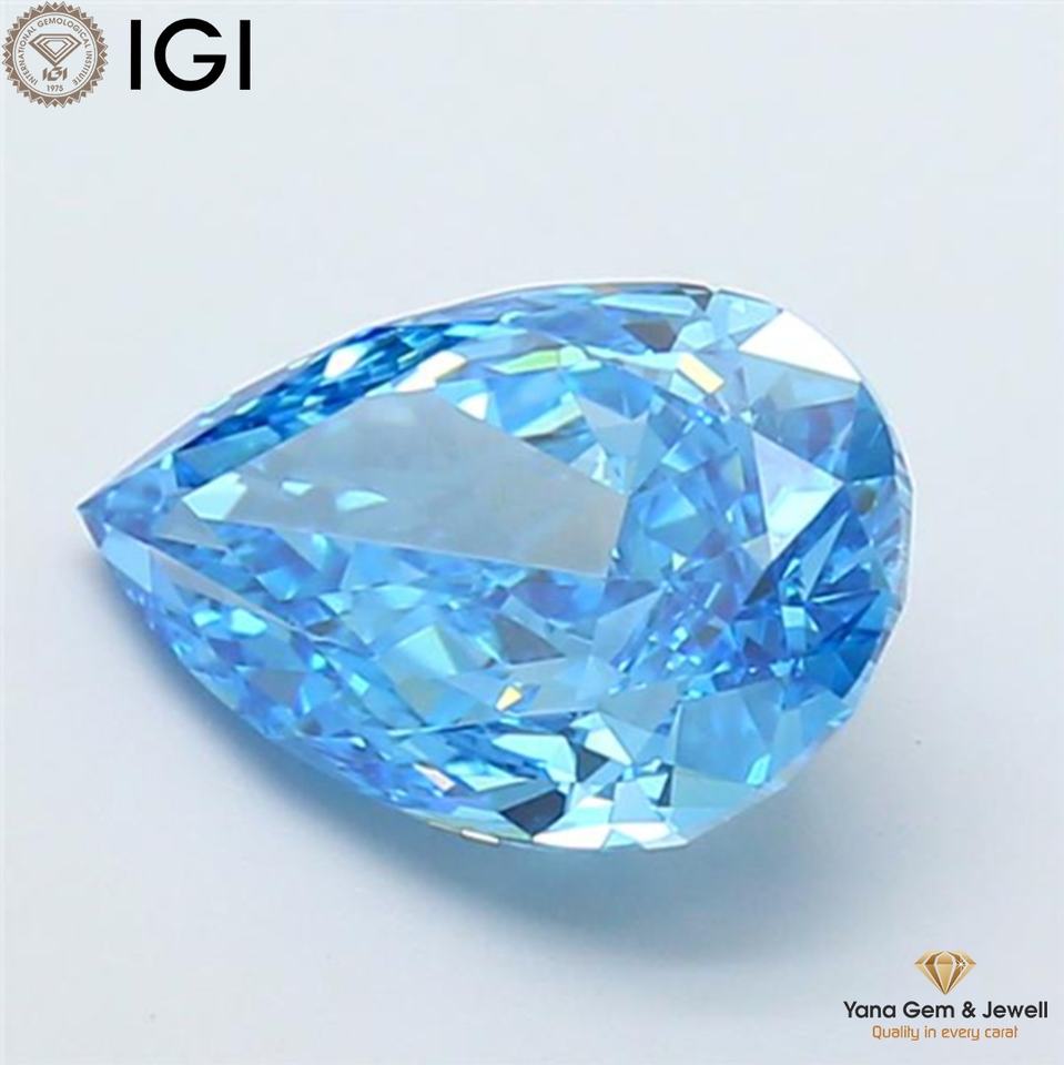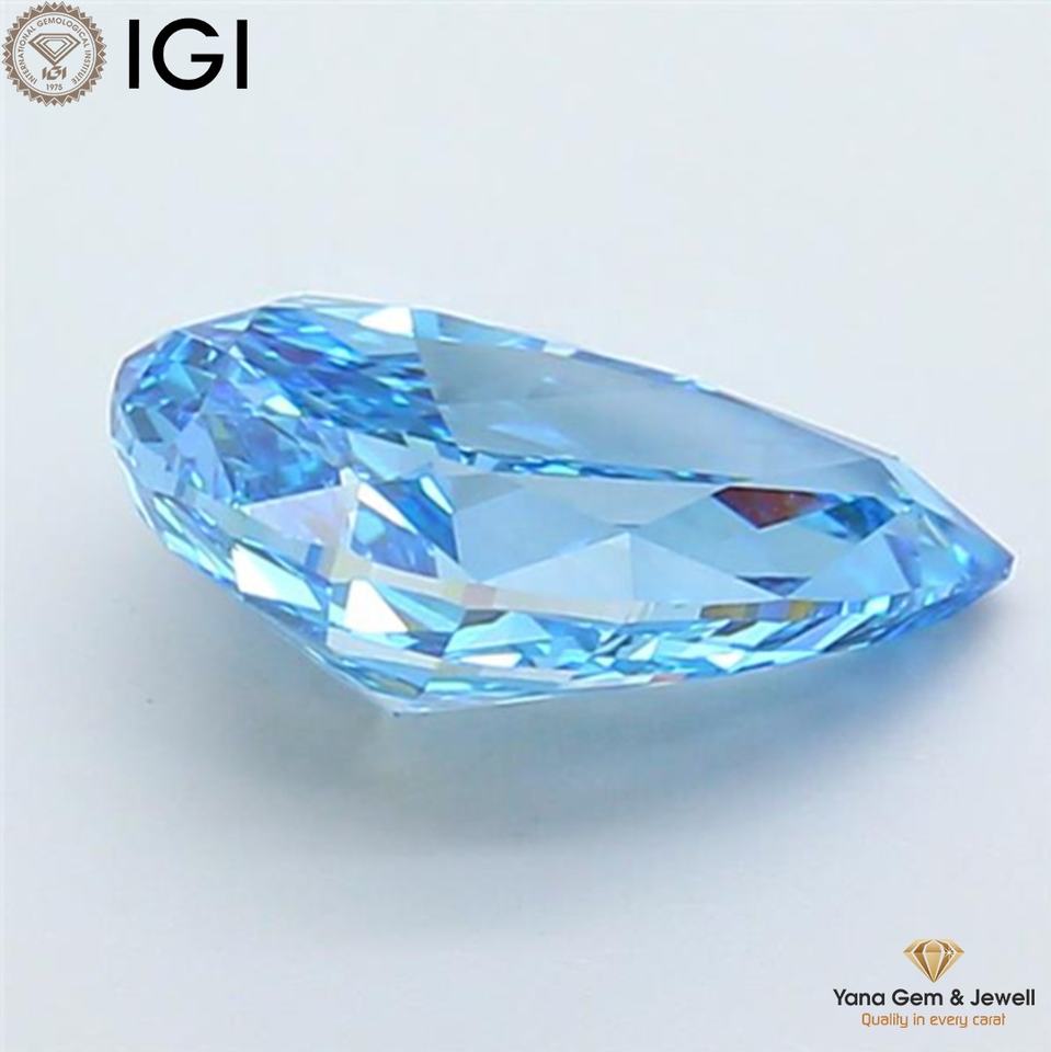 เพชร CVD สีฟ้าสดใส ระดับความสะอาด VS1 รูปทรงลูกแพร์ 4.00 กะรัต พร้อมใบรับรอง IGI สำหรับเครื่องประดับแบบโซลิแทร์