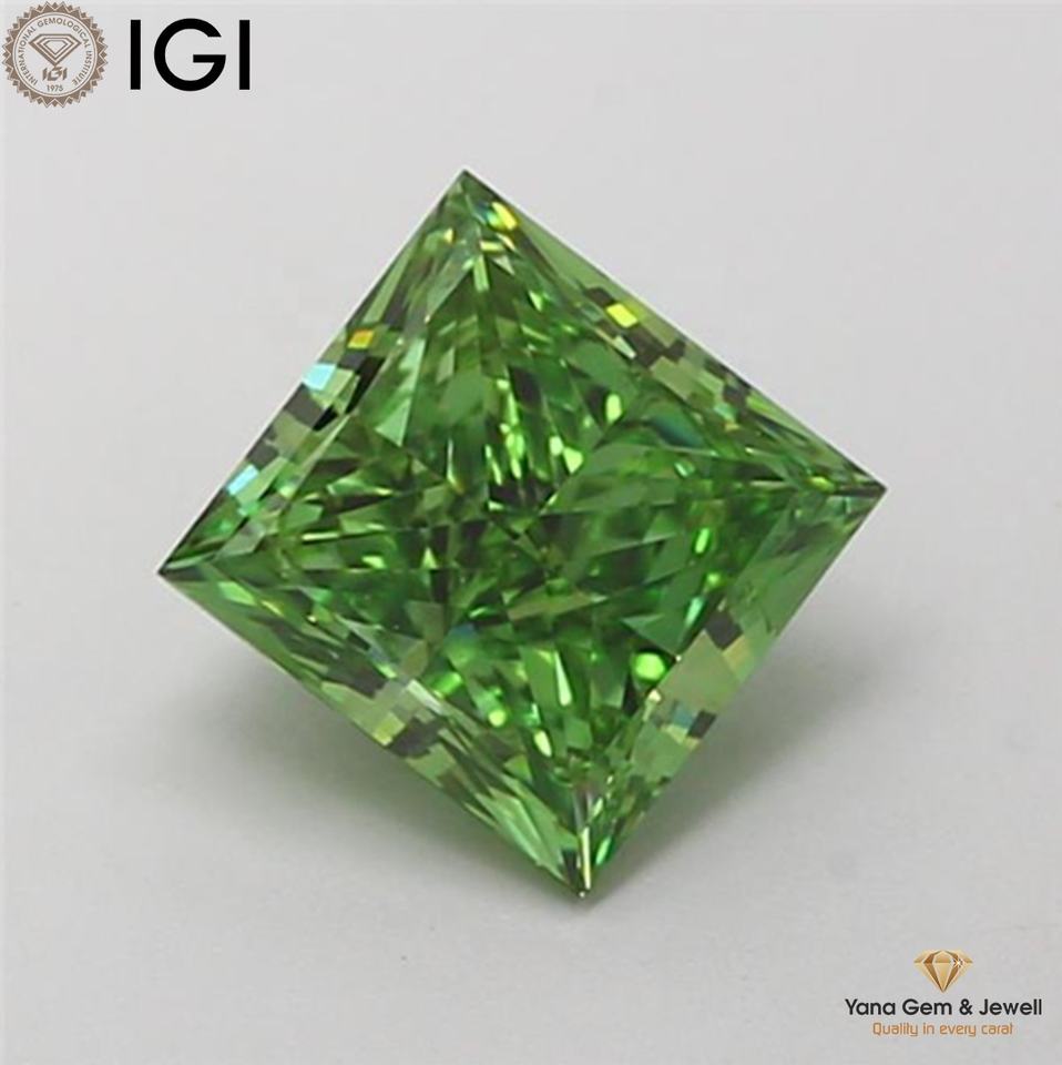 VS1 Clarity Fancy Vivid Green Color 2.00 CARAT CVD Lab Grown Diamond Princess Cut With IGI Certified Perfect for Custom pendant