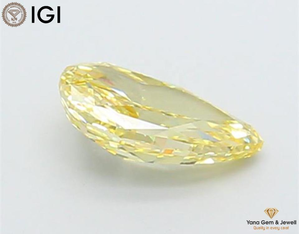 เพชร CVD สีเหลืองแฟนซี ความใส VS1 รูปทรงลูกแพร์ 1.00 กะรัต พร้อมใบรับรอง IGI สำหรับเครื่องประดับดีไซเนอร์