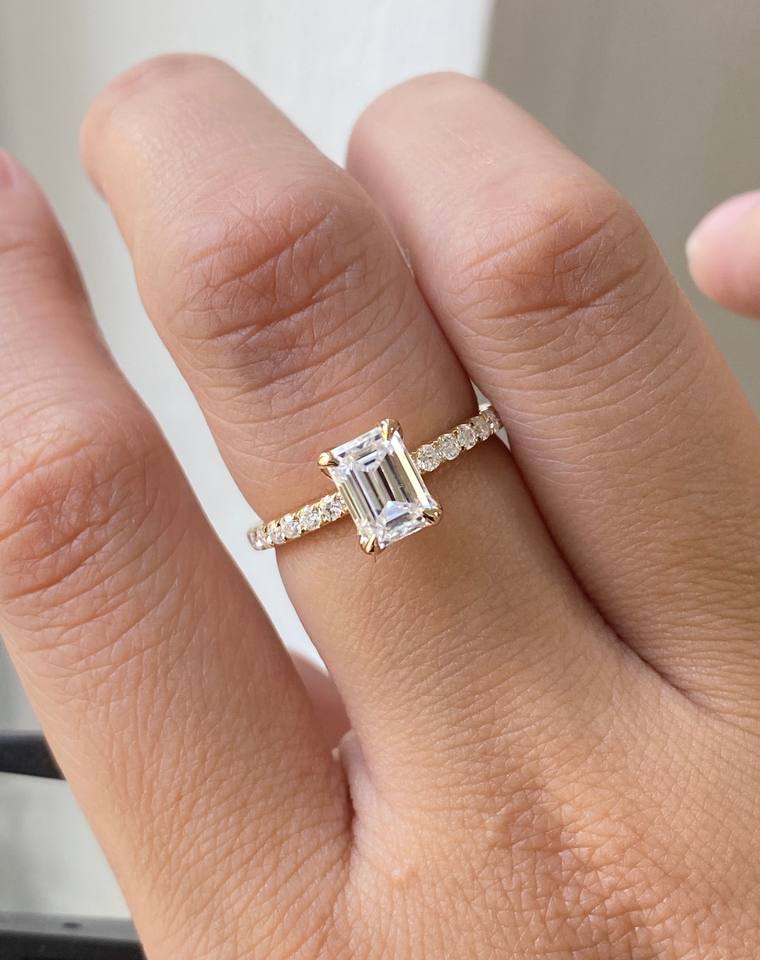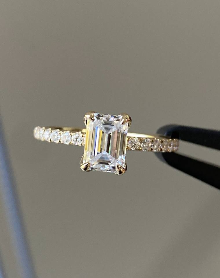 แหวนเพชรประดับสีเขียวมรกตสุดหรูสำหรับงานแต่งงานผลิตในห้องปฏิบัติการ VS1สีเหลืองทองแหวนหมั้นสำหรับเจ้าสาวเป็นของขวัญครบรอบ