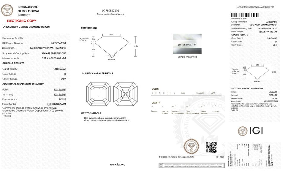 หมายเลขรุ่น:ASSCHER CVD 1.50 CT. D-VS2