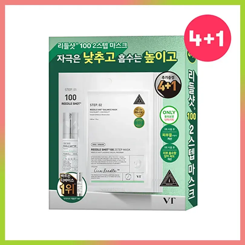 VT แผ่นมาส์กหน้า100แบบ2ขั้นตอน, ชุด4ea คุณภาพดี (+ 1EA) สำหรับผิวหน้า