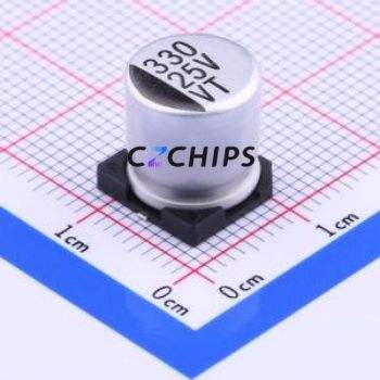 ตัวเก็บประจุอิเล็กโทรไลต์อะลูมิเนียมแบบ SMD รุ่น VT1E331MG105000CE0 ขนาด D10xL10.5 มม. 330uF 20% 25V 10 มม.