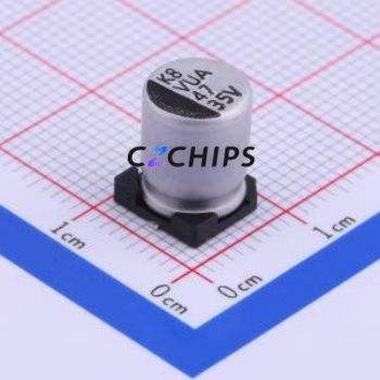 ตัวเก็บประจุแบบอิเล็กโทรไลต์อะลูมิเนียม SMD รุ่น VUA470M1VTR-0810, ขนาด D8xL10 มม. 47uF 20% 35V 8 มม.