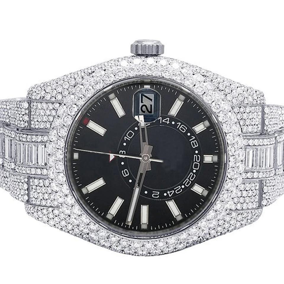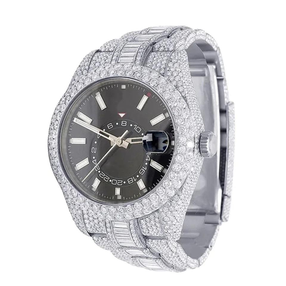 นาฬิกาข้อมือผู้ชายสุดหรู คอลเลคชั่น VVS 1 Clarity ประดับเพชรโมอิสซาไนต์ ดีไซน์ทันสมัย ตัวเรือนสแตนเลสสตีล ระบบกลไก