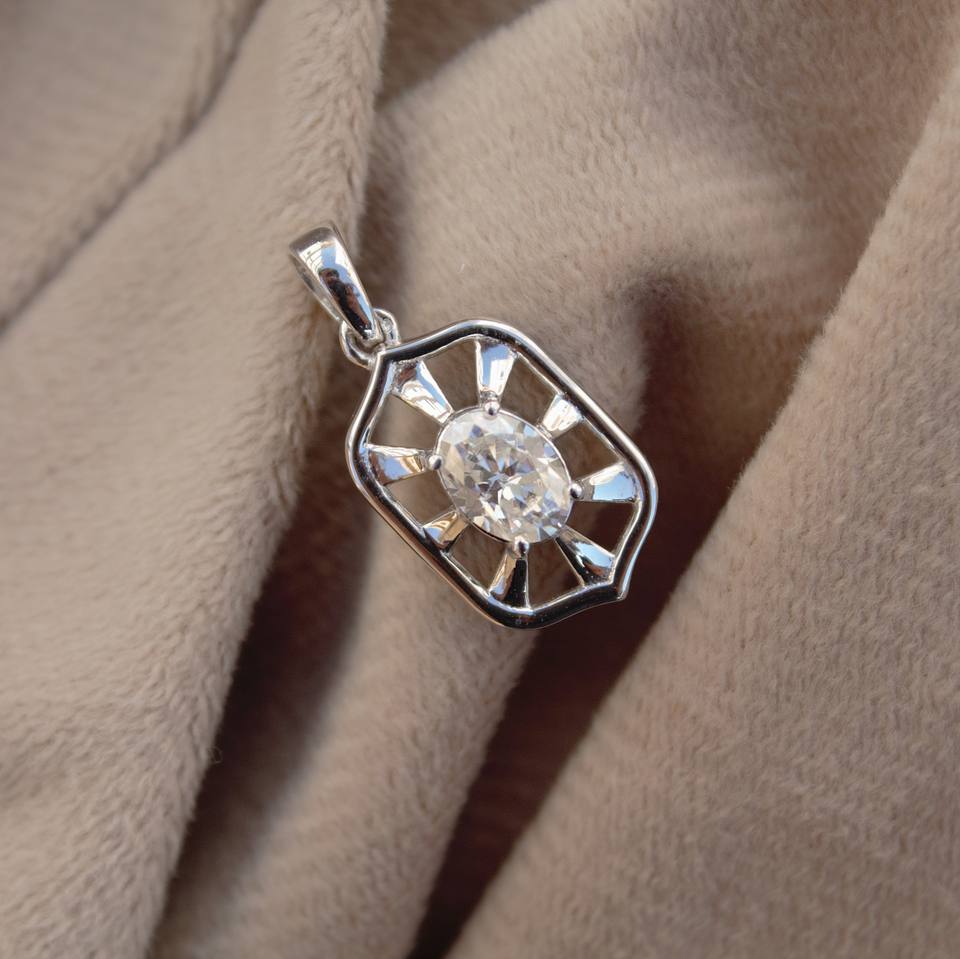 จี้เพชรโมอิสซาไนต์ทรงรีแบบมินิมอลสำหรับผู้หญิง GEMETHYST VVS 1 กะรัต พร้อมกรอบแบบกรงเล็บและเงิน S925 ไม่มีสายสร้อย