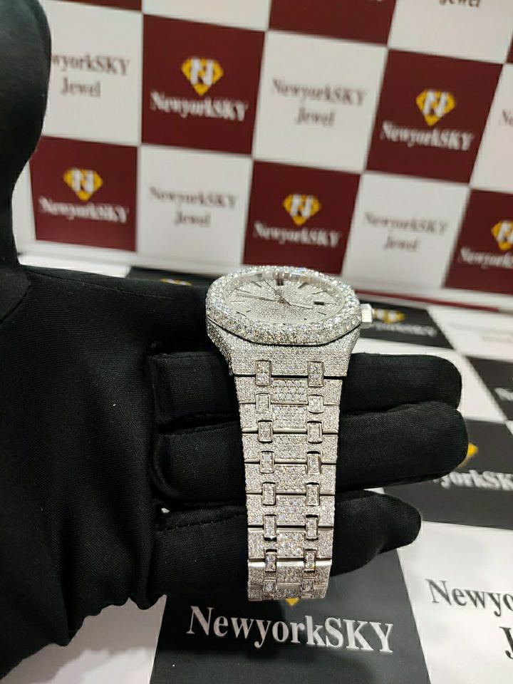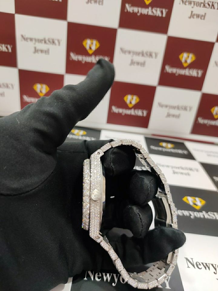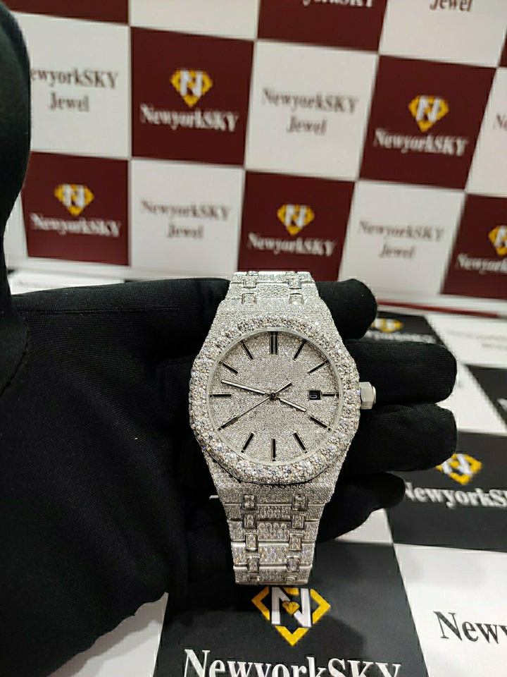 VVS Moissanite นาฬิกาอะนาล็อกข้อมือเพชรเย็นสำหรับผู้ชายและผู้หญิงเครื่องประดับที่ปรับแต่งได้หรูหราสายสแตนเลส