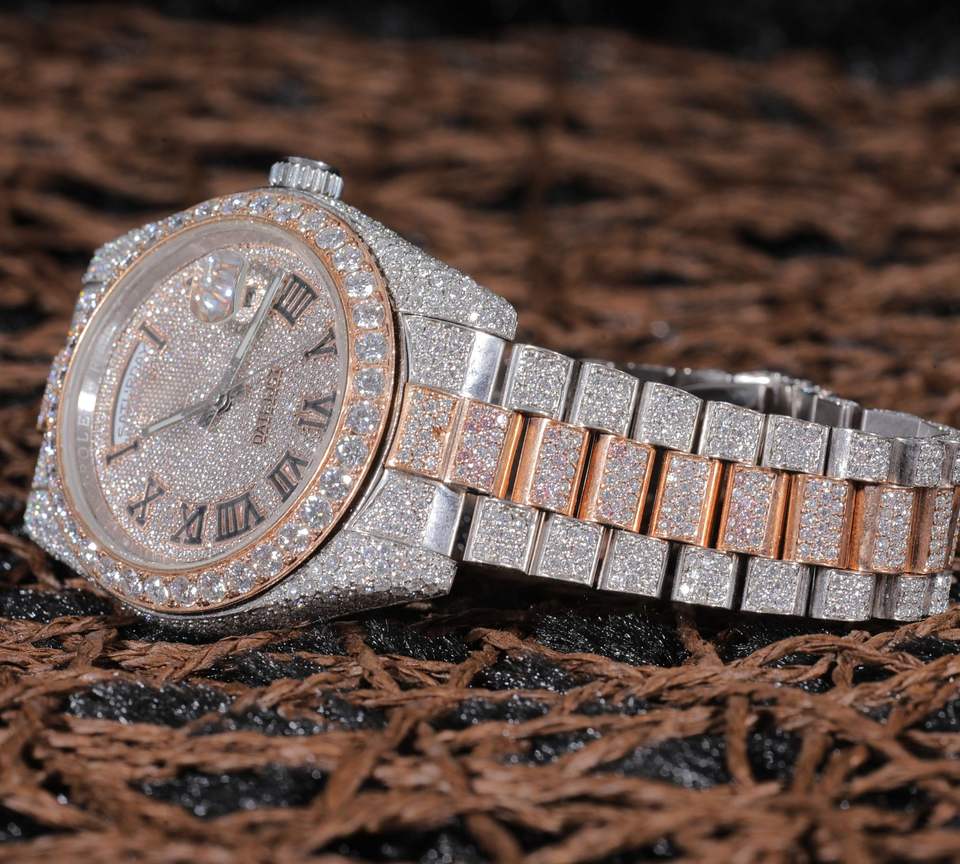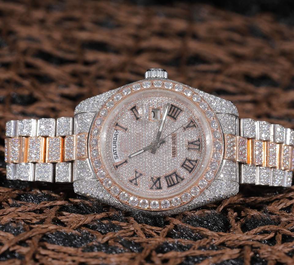 นาฬิกากลไกเพชรโมอิสใส VVS นาฬิกาสเตนเลสที่สวยงามผลิตตามสั่งสำหรับผู้ชายขายดีที่สุดในอินเดีย