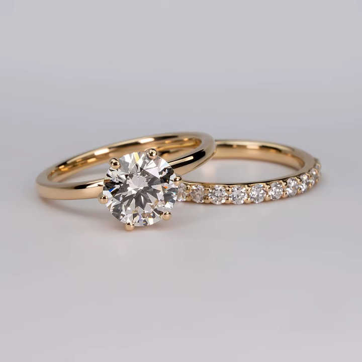 แหวนเพชร VVS ขนาด 1.00 กะรัต ทรงกลมหรูหรา เพชรเลี้ยงในห้องปฏิบัติการ ชุดแหวนหมั้นทอง 18K/14K/10K แหวนแต่งงานสำหรับเจ้าสาว ของขวัญ เครื่องประดับชั้นดี