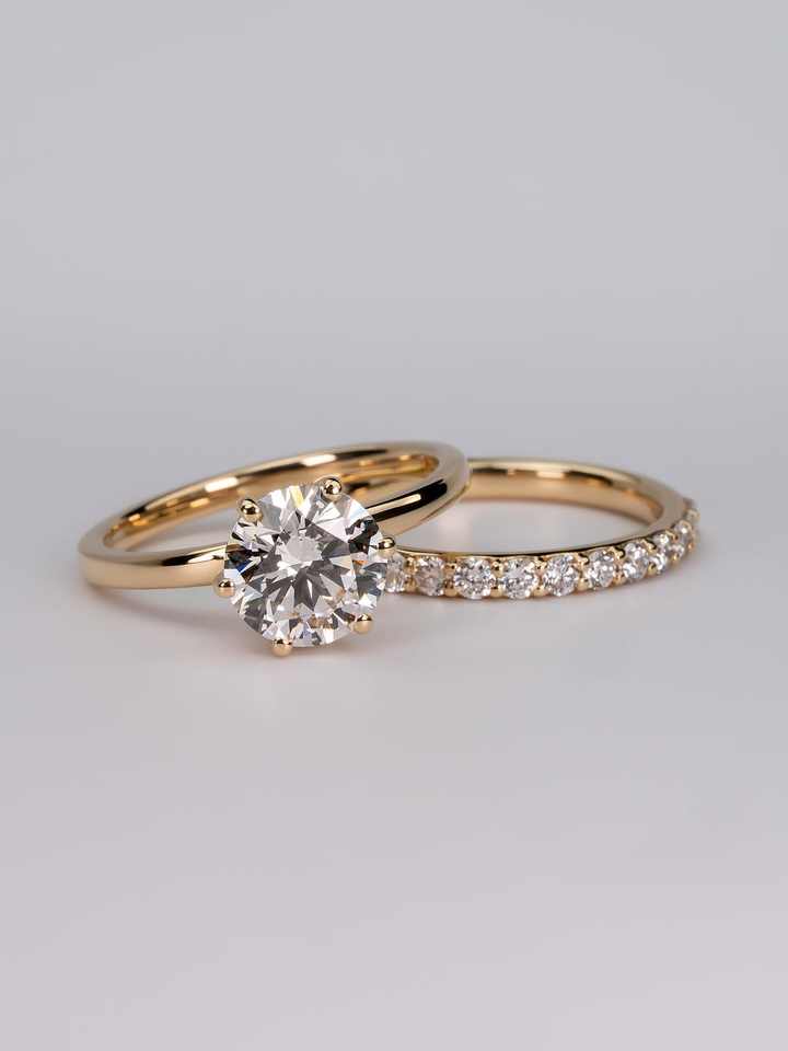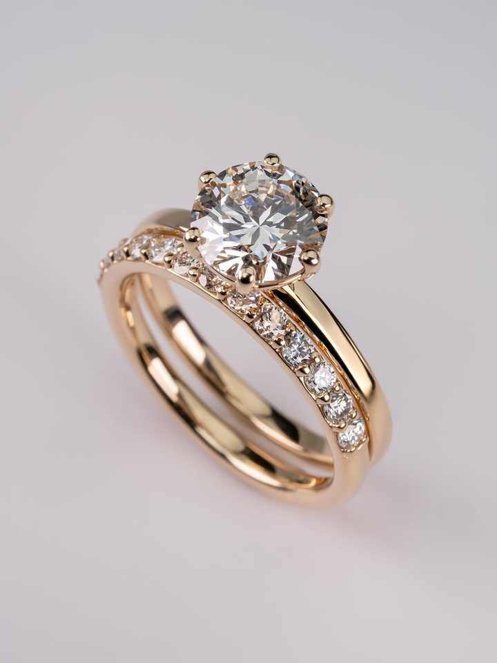 แหวนเพชร VVS ขนาด 2.00 กะรัต ทรงกลมหรูหรา เพชรเลี้ยงในห้องปฏิบัติการ ชุดแหวนหมั้นทอง 18K/14K/10K แหวนแต่งงานสำหรับเจ้าสาว ของขวัญ เครื่องประดับชั้นดี