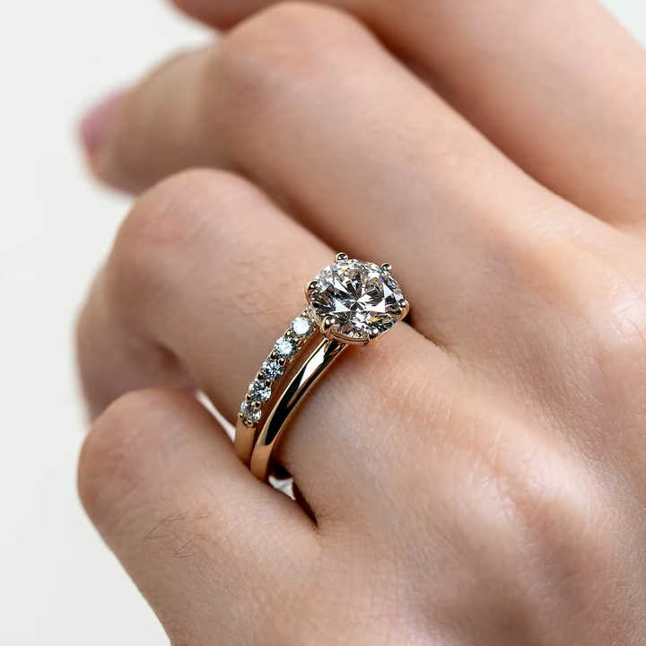 VVS Diam 3.00 Ct Luxury Round Cut Lab Grown Diamond Engagement Ring Set 18K/14K/10K Gold Bridal Wedding Band Gift Fine Jewelry
